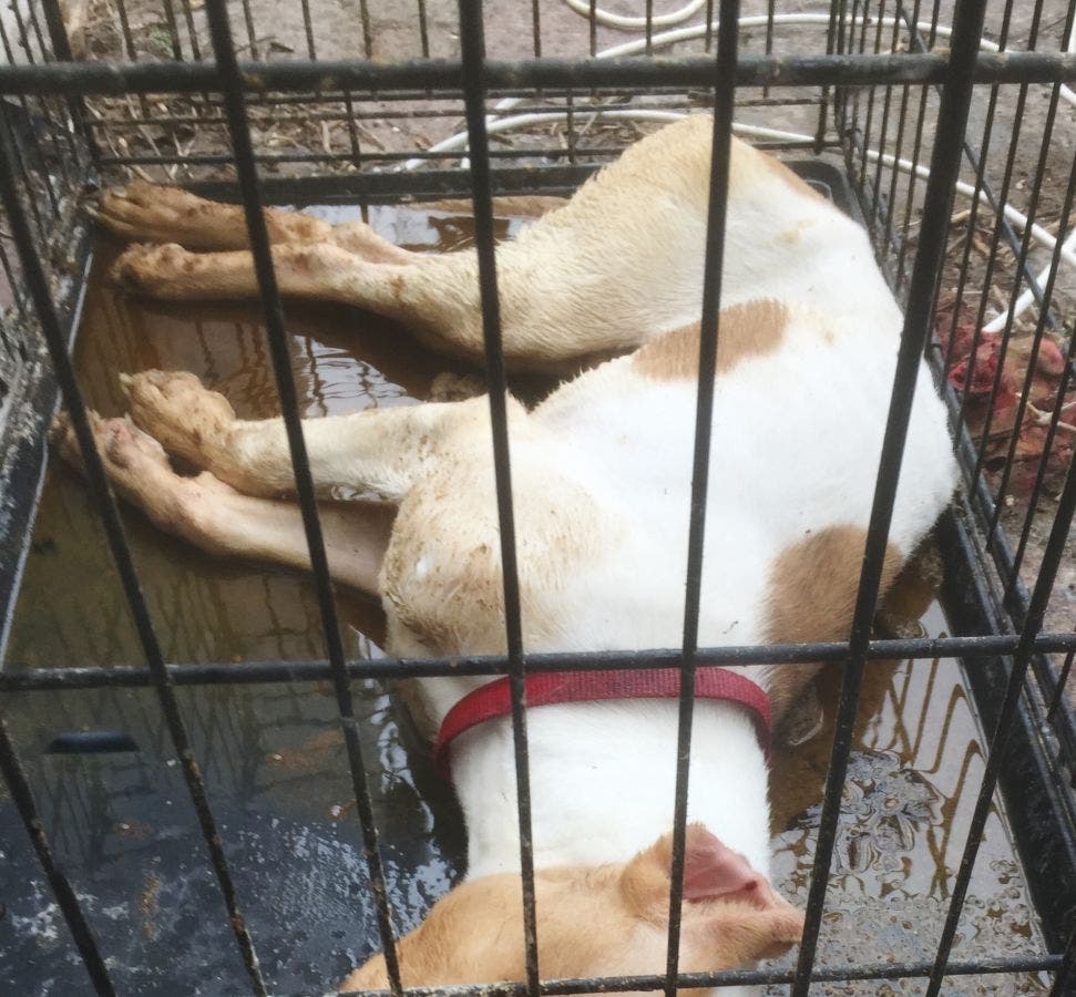 What they found was the body of a male pit bull puppy, six-to- eight months old, inside a crate. A necropsy revealed that the puppy died of starvation. All the skeletal bones were visible. The stomach was empty. The puppy was essentially skin and bones.