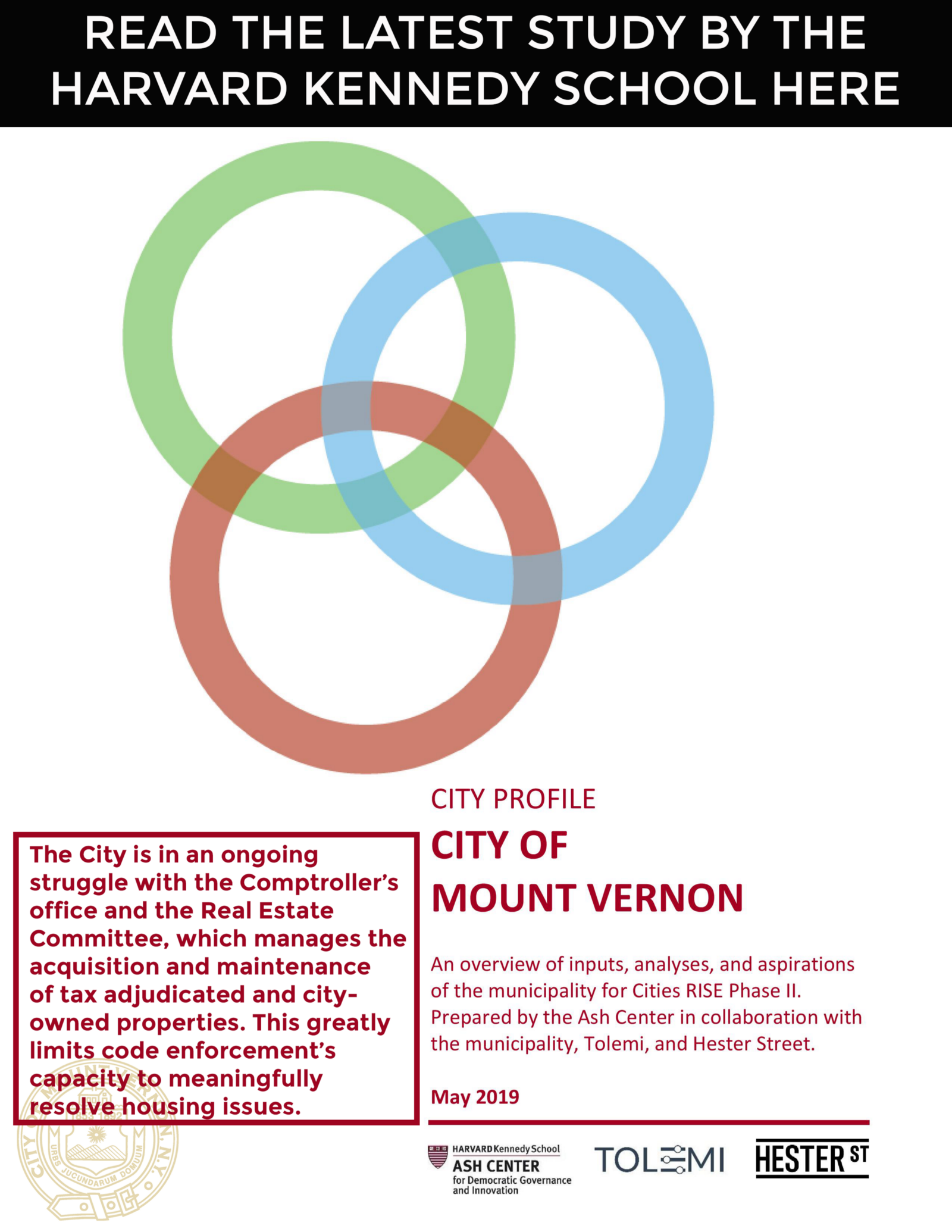 HARVARD KENNEDY SCHOOL REPORT outlining Mount Vernon’s current strengths, weaknesses, opportunities, and threats to help Mount Vernon respond to community needs and achieve its goals of RISING!