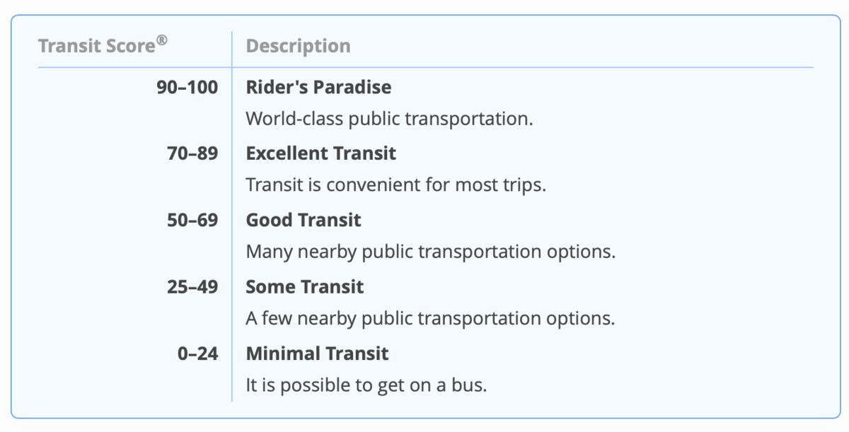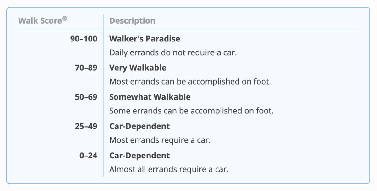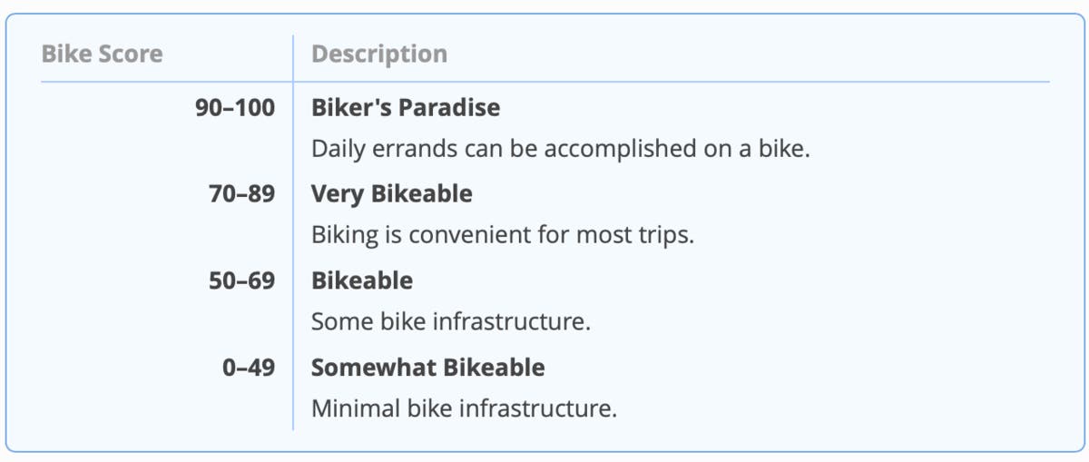 Roughly every city in the Unites States has a walk, bike and transit score that is determined by a variety of factors within the community being observed.