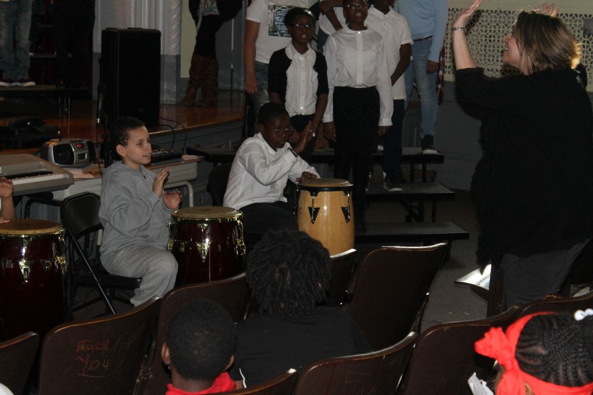 Photo: Damien Pryce (right), a sixth-grader at Edward Williams Elementary School, performs for parents who came to the school for the district’s annual Parent Involvement Day.