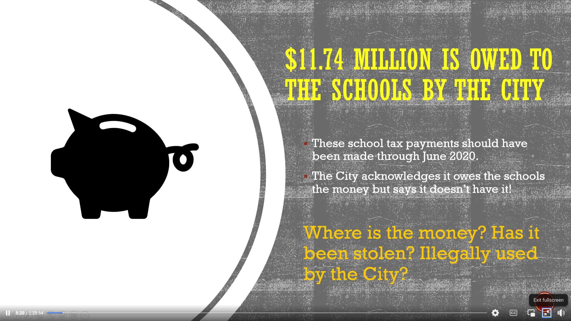 "Where is the money?" the presentation material asked. "Has it been stolen? Illegally used by the City?"