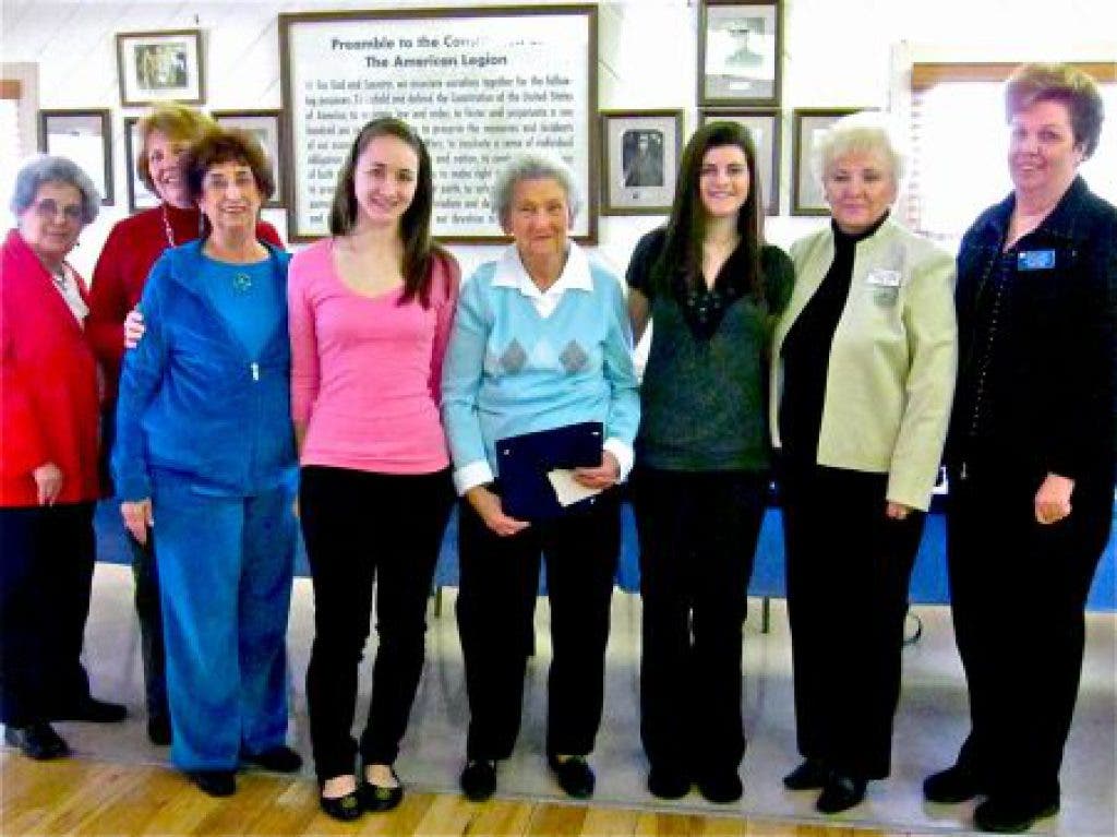 Trisha Horan and Christine Zemsky, seniors at Albertus Magnus High School, were presented with "Good Citizenship" Awards on Saturday, January 15, 2011, by Ann Chmielnik of the Women's Auxiliary of the William E. De Bevoise, Jr. American Legion Post 1682.