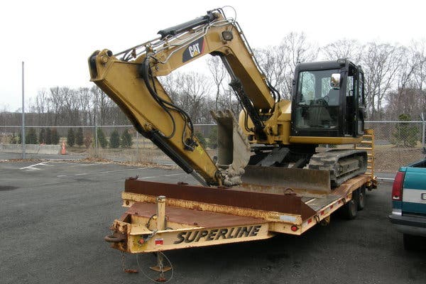 A Clarkstown Police officer on patrol spotted a truck and trailer exiting a new business construction area with a mini excavator on the trailer. The trailer had no brake lights -- so the officer conducted a traffic stop.