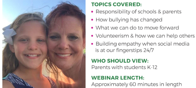The webinar was crafted in cooperation with Mallory’s Army to bring parents tools to help prevent bullying in their own community. Mallory's Army was formed in memory of Mallory Rose Grossman, 12, of Rockaway, NJ, who took her own life June 14, 2017 because of bullying.