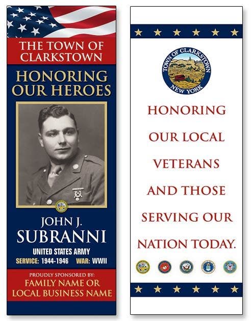 “The military tribute banners are a small way we can acknowledge the sacrifice many of our neighbors have made serving our community and our Country,” Hoehmann said in the announcement. “Our local veterans and active duty service members are our true heroes, and this program allows Clarkstown to proudly honor them right in the County's seat.”