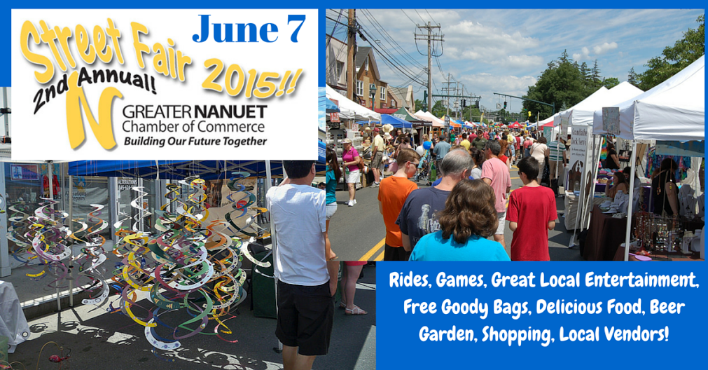 There is no charge for admission to the Street Fair and free parking is available around Main Street. A map will be posted to the Chamber website. Anyone wishing to help out with the coordinating any aspect of the fair is encouraged to go towww.nanuetchamber.com or send an email to info@nanuetchamber.com.
