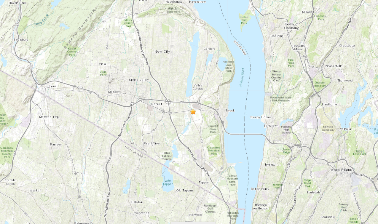 WEST NYACK, NY — An earthquake occurred Thursday night in Rockland County on the Hackensack River not far from the New York Thruway. The quake was recorded at 9:41 p.m.
