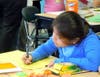 The students each received a piece of construction paper and used stamps and markers to decorate the placemats with Thanksgiving pictures and words.