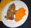 - topped with Mushrooms and Onions served with Sweet Mashed Potatoes