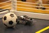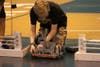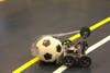 Their robot had an arm that clamped down, allowing the robot to hold the soccer ball in close while blocking the other robots from getting to it. Curry said they originally planned on giving the robot a claw in front that close horizontally, but decided on the arm because it could better hold the soccer ball.