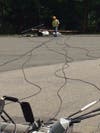 Clarkstown Police Department received a report of a tractor trailer striking overhead power lines at the rear of 150 Rt. 59 in Nanuet while making a delivery at about 12:30 PM Thursday.