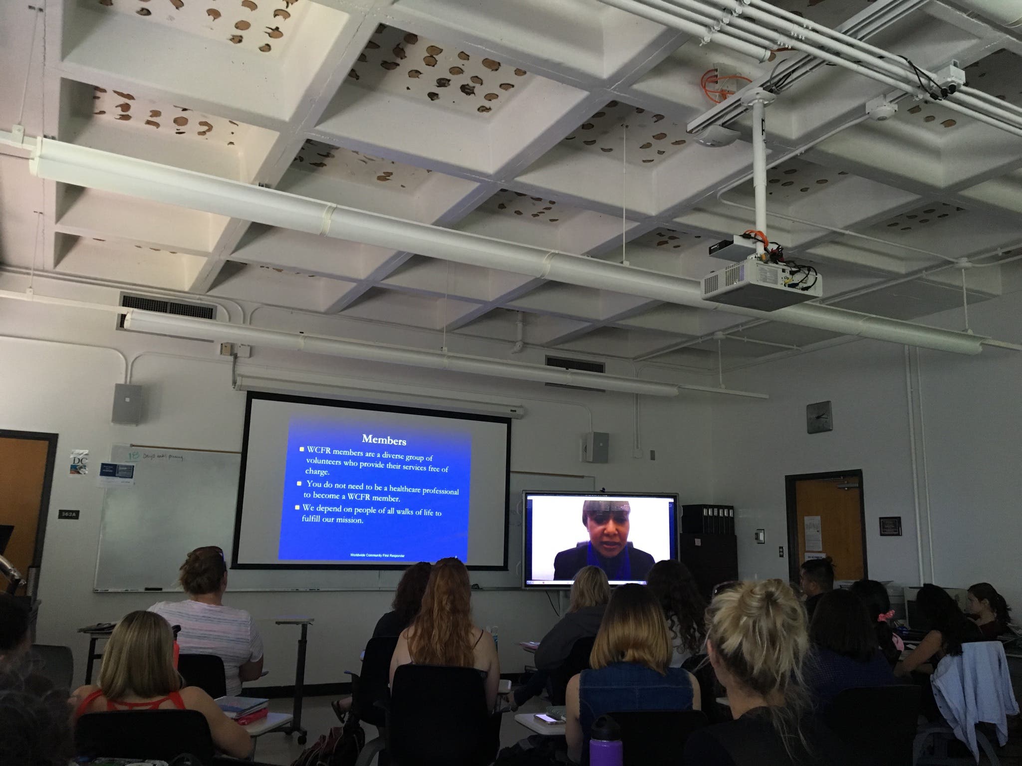 WCFR Founder & President, Jacqueline Cassagnol, MSN, RN, PMC visited nursing students of California State University on May 2nd from WCFR headquarters in Rockland, NY via a Skype session. President Cassagnol made a powerpoint presentation on WCFR and talked about the services that WCFR provides globally.