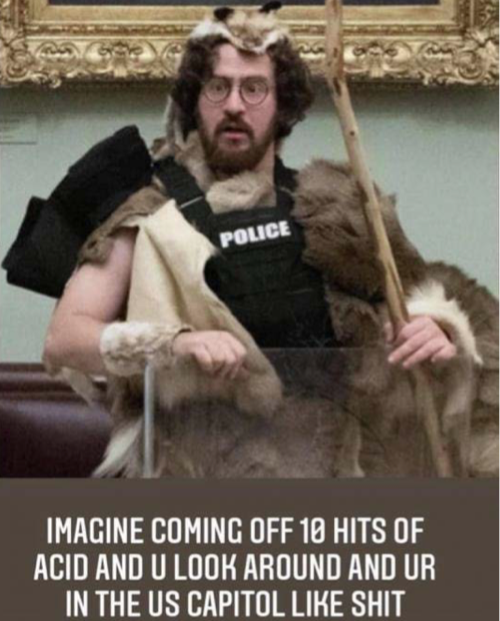"Imagine coming off 10 hits of acid and u look around and ur in the U.S. Capitol like s***," the meme states.