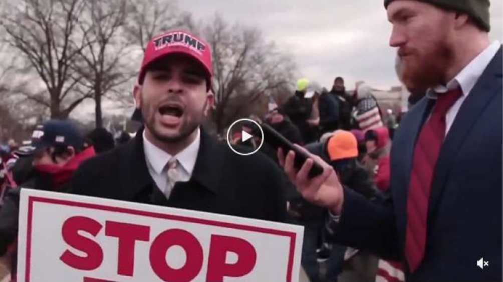 He also wore a "Trump" hat and held a "Stop The Steal" sign while giving an interview outside the Capitol," authorities said.