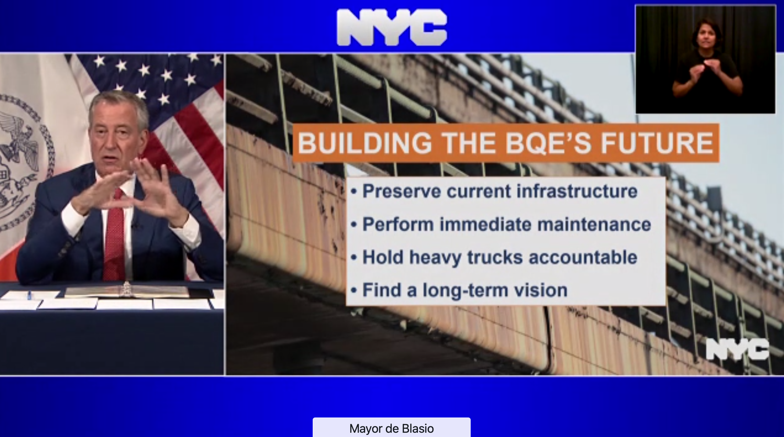De Blasio and transportation officials denied that approach kicks the can down the BQE's crumbling road.
