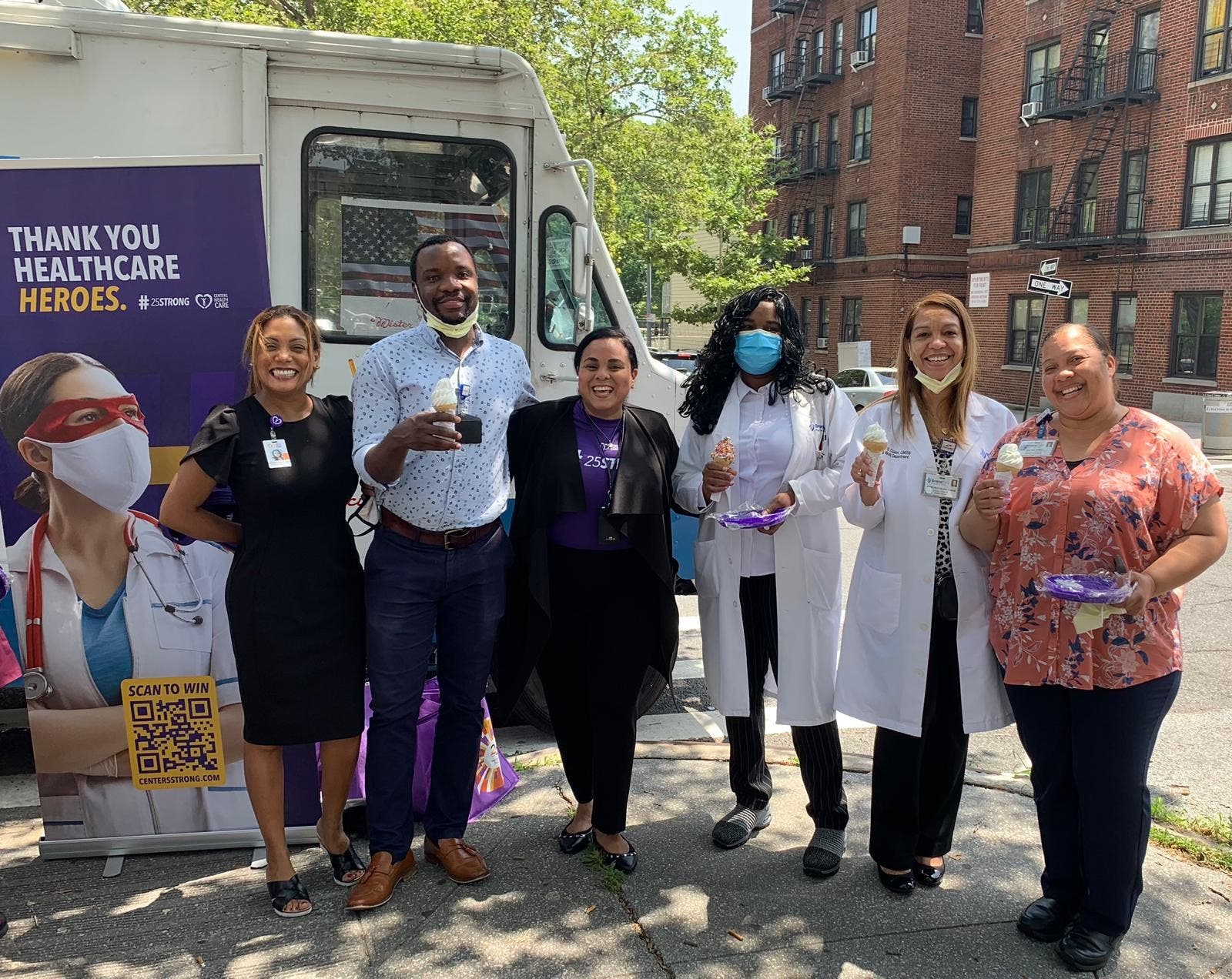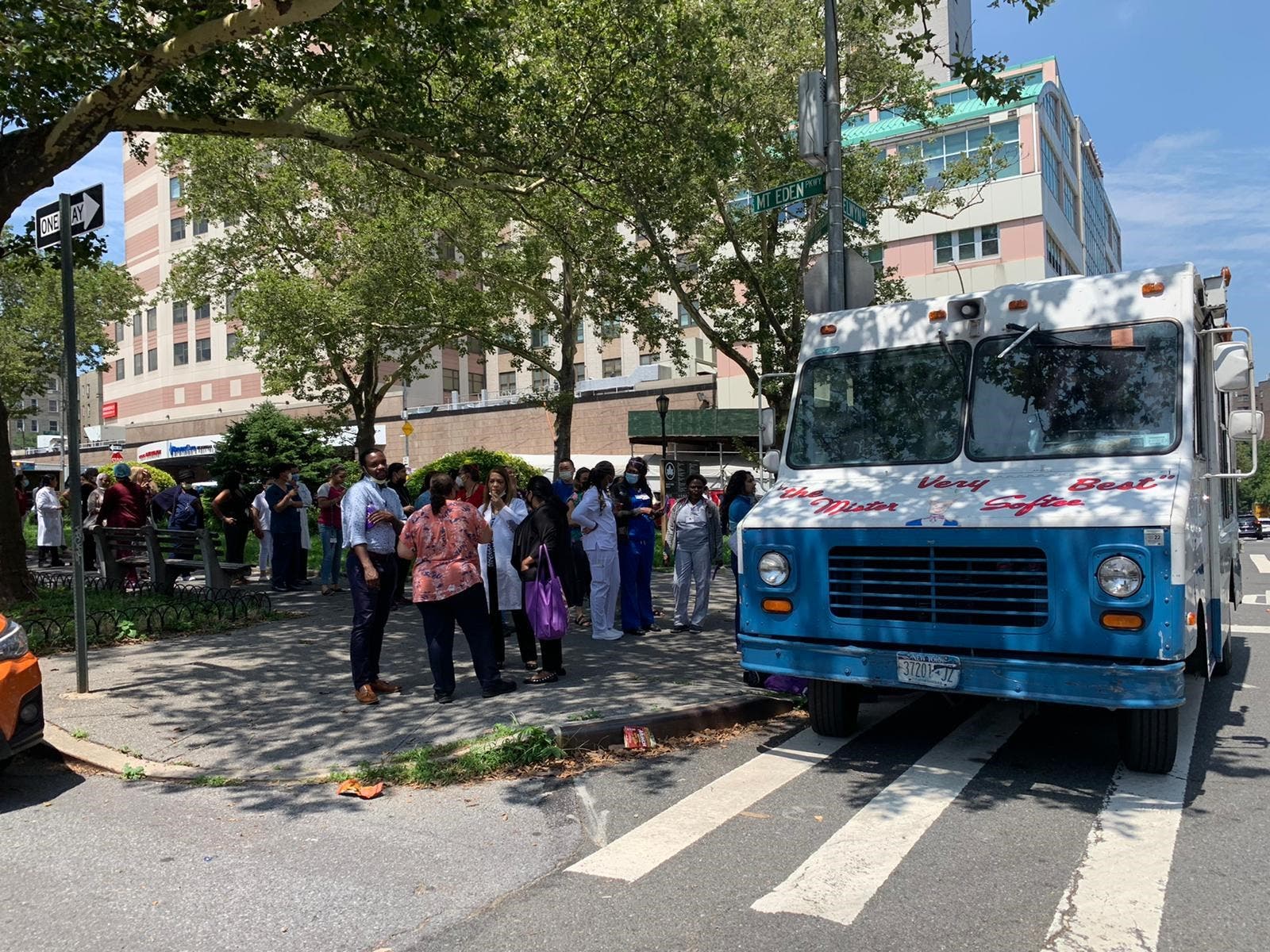 After the clouds were burned off by the July summer sun, it was time to celebrate with the BronxCare health care workers for the heroics they have done over the past 15 months during COVID. So yesterday, the turnout was great at the highly-respected BronxCare hospital on the Grand Concourse and Mt. Eden Avenue where more than 200 ice creams were given out to the happy staff.