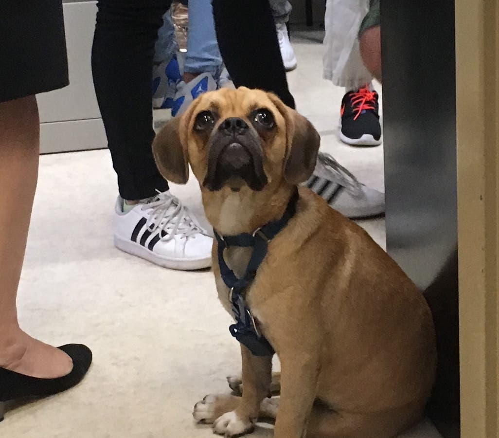 That school in the Financial District is home to Bruno, a 7-month-old pug and beagle mix adopted in August by school principal Kelly McGuire.