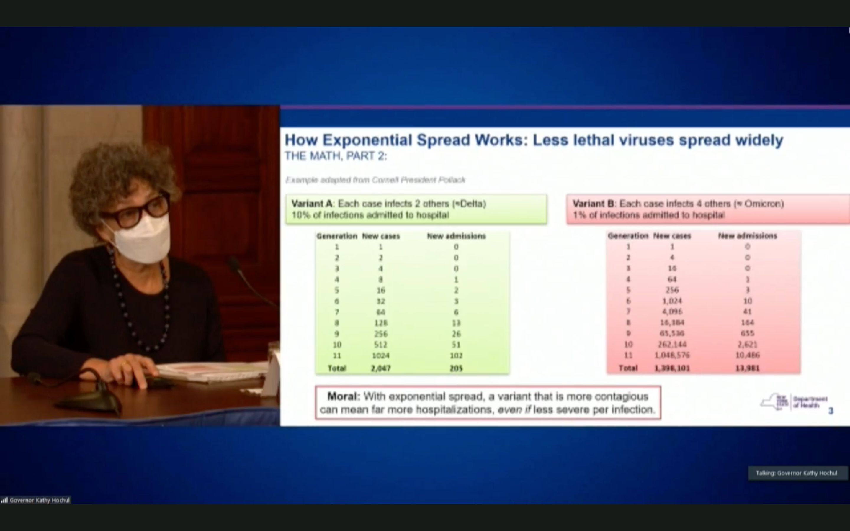 "With exponential spread, a variant that is more contagious can mean far more hospitalization, even if less severe per infection," a slide she presented stated.