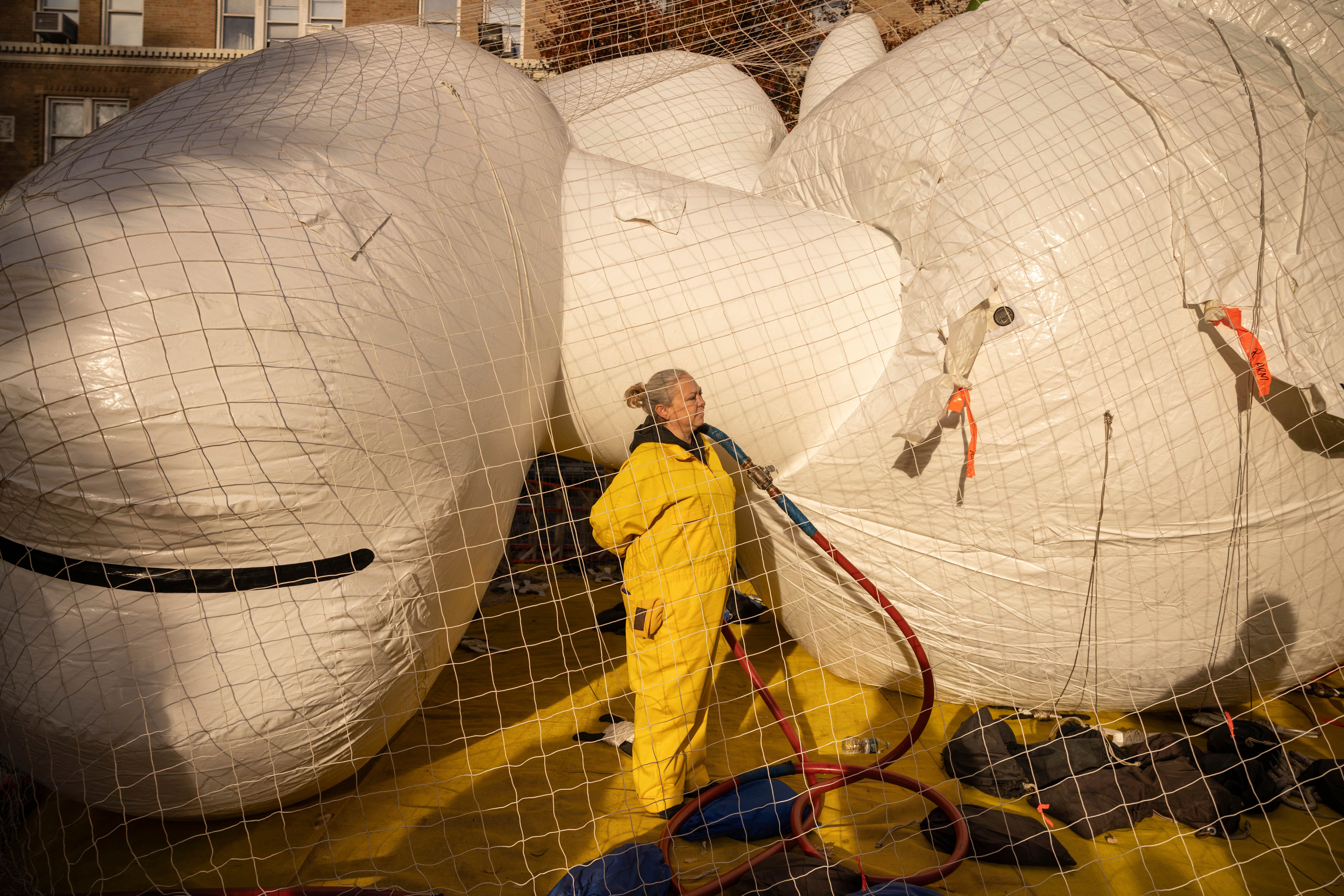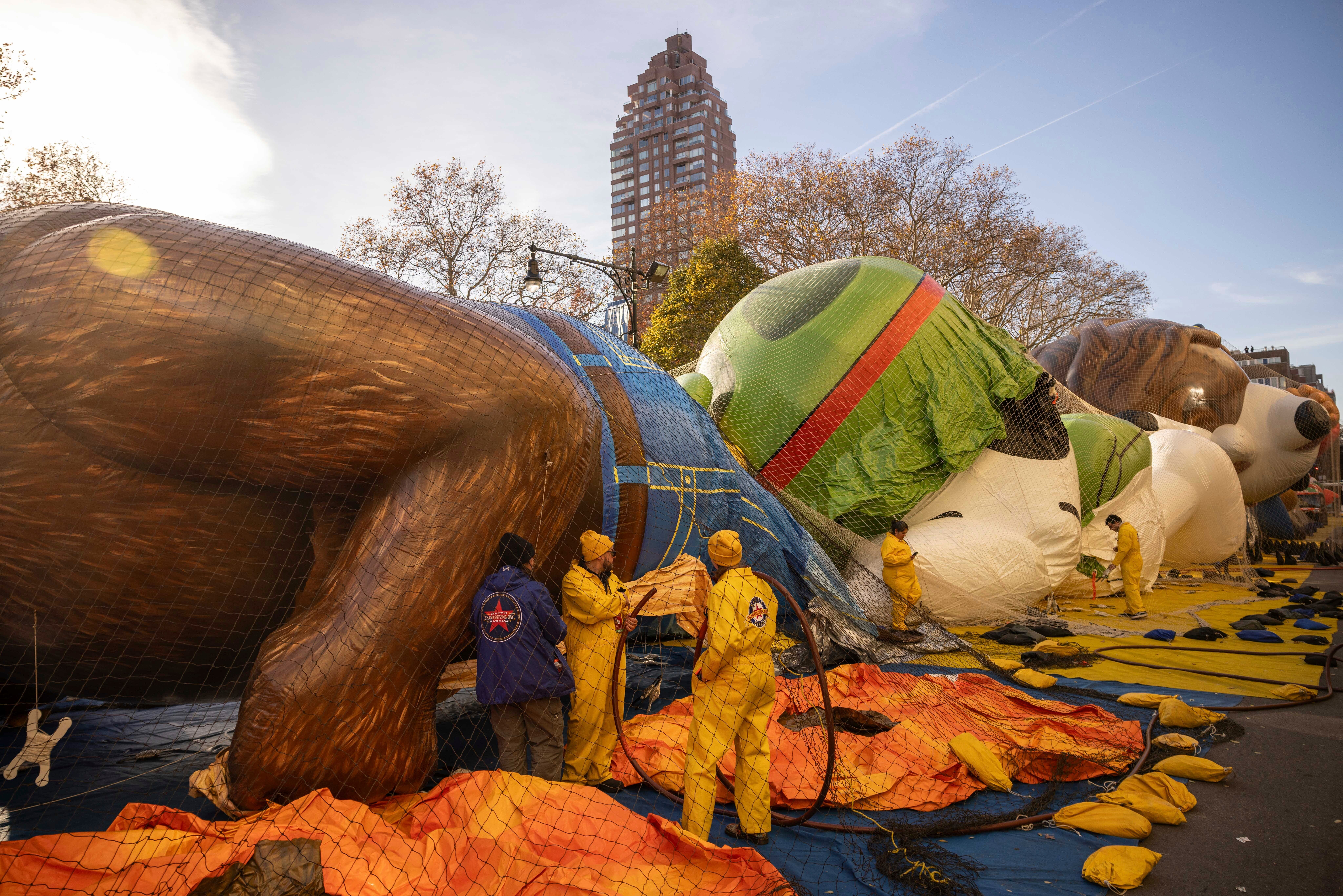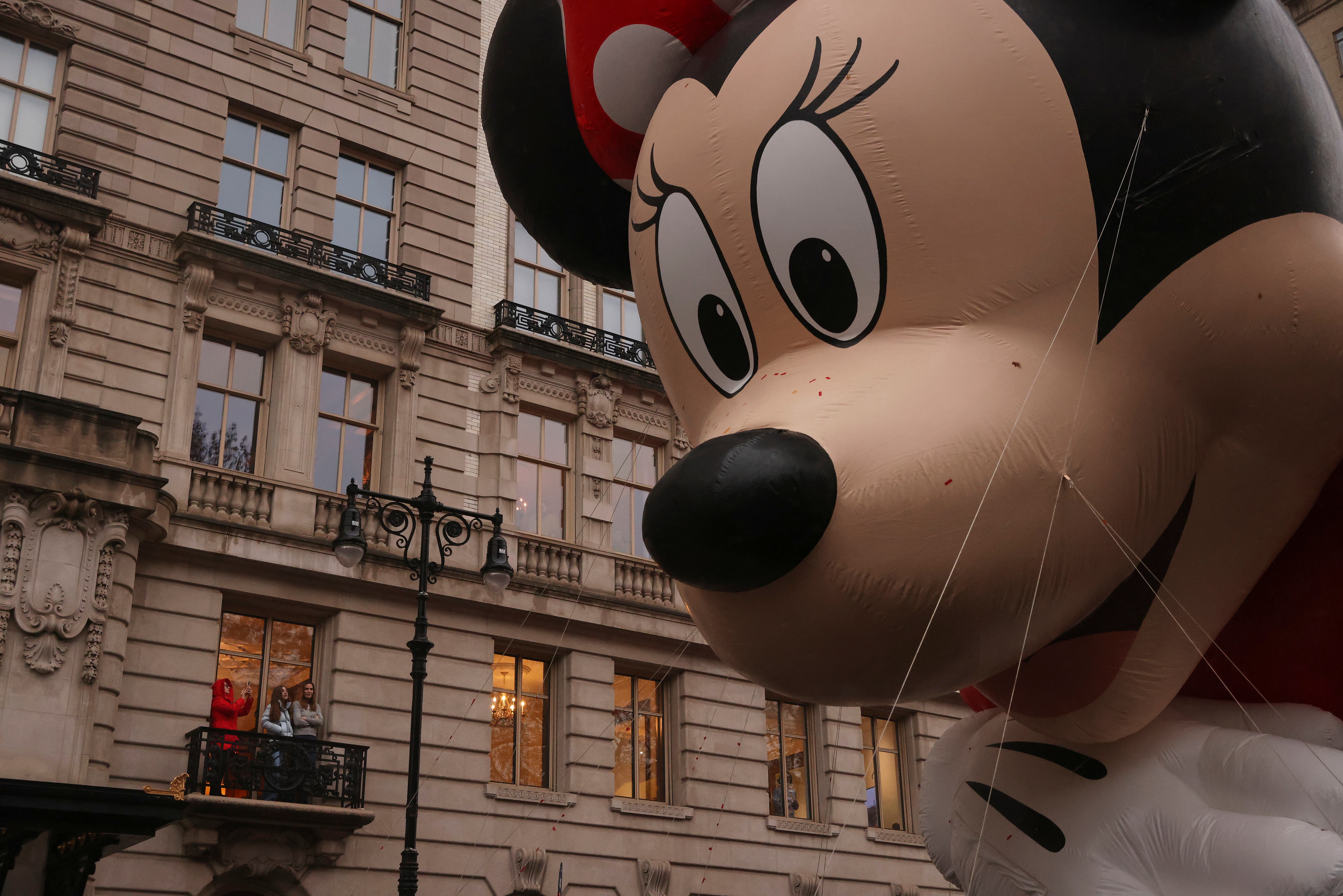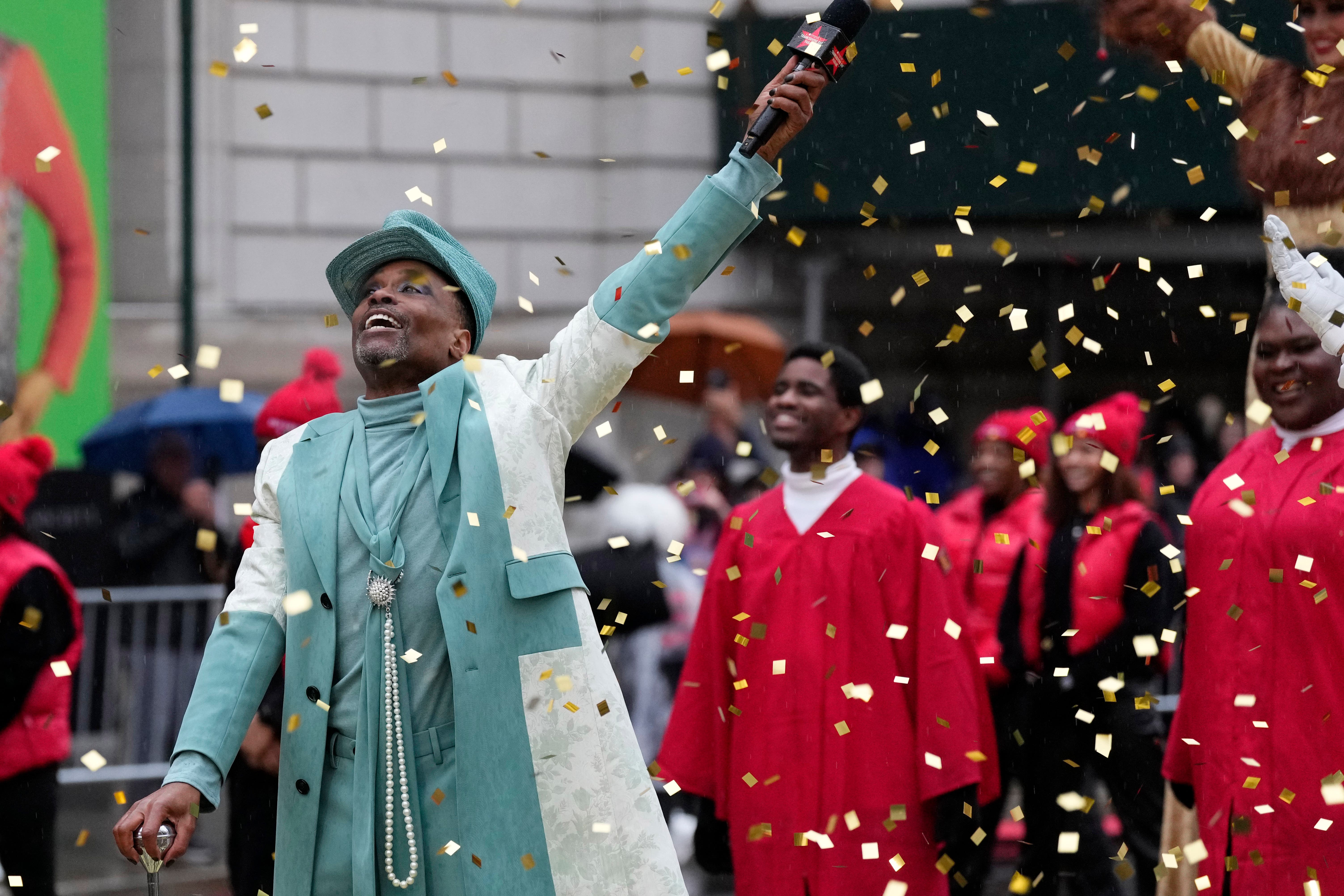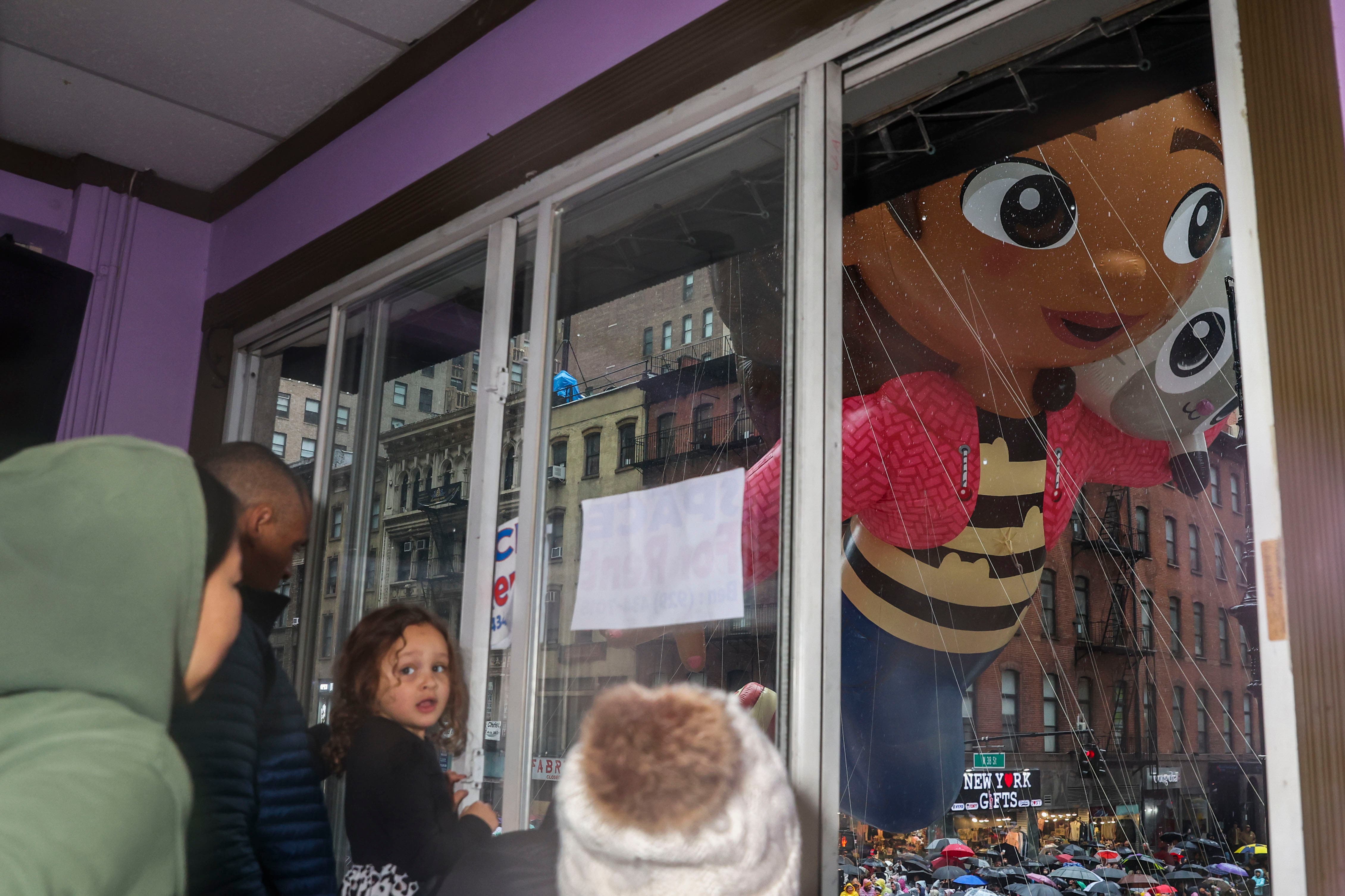 Handlers guide the SpongeBob SquarePants balloon down Sixth Avenue during the Macy's Thanksgiving Day Parade, Thursday, Nov. 28, 2024, in New York. (AP Photo/Julia Demaree Nikhinson)Quenton Lindstrom and his friends and family watch the Macy's Thanksgiving Day parade from above while inside Spirit Lab Yoga, Thursday, Nov. 28, 2024, in New York. (AP Photo/Heather Khalifa)A performer dressed as a candy cane walks down Sixth Avenue during the Macy's Thanksgiving Day Parade, Thursday, Nov. 28, 2024, in New York. (AP Photo/Julia Demaree Nikhinson)Billy Porter performs during the Macy's Thanksgiving Day Parade on Thursday, Nov. 28, 2024, in New York. (Photo by Charles Sykes/Invision/AP)Joey McIntyre rides a float in the Macy's Thanksgiving Day Parade on Thursday, Nov. 28, 2024, in New York. (Photo by Charles Sykes/Invision/AP)People watch from inside as the Macy's Thanksgiving Day parade goes by, Thursday, Nov. 28, 2024, in New York. (AP Photo/Heather Khalifa)Pro-Palestinian protesters demonstrate on Sixth Avenue during the Macy's Thanksgiving Day Parade, Thursday, Nov. 28, 2024, in New York. (AP Photo/Julia Demaree Nikhinson)New York Police arrest Pro-Palestinian protesters who were demonstrating on Sixth Avenue during the Macy's Thanksgiving Day Parade, Thursday, Nov. 28, 2024, in New York. (AP Photo/Julia Demaree Nikhinson)The Macy's Great American Marching Band plays as it heads down Sixth Avenue during the Macy's Thanksgiving Day Parade, Thursday, Nov. 28, 2024, in New York. (AP Photo/Julia Demaree Nikhinson)Spectators watch from an apartment balcony as Disney's Minnie Mouse balloon floats by on Central Park West during the Macy's Thanksgiving Day Parade, Thursday, Nov. 28, 2024, in New York. (AP Photo/Yuki Iwamura)Handlers pull the Bluey balloon down Central Park West during the Macy's Thanksgiving Day Parade, Thursday, Nov. 28, 2024, in New York. (AP Photo/Yuki Iwamura)Handlers pull the Diary of a Wimpy Kid balloon down Central Park West during the Macy's Thanksgiving Day Parade, Thursday, Nov. 28, 2024, in New York. (AP Photo/Yuki Iwamura)People stand in the rain along Sixth Avenue ahead of the start of the Macy's Thanksgiving Day Parade, Thursday, November 28, 2024, in New York. (AP Photo/Julia Demaree Nikhinson)People inflate floats in preparation for the Macy's Thanksgiving Day Parade, Wednesday, Nov. 27, 2024, in New York. (AP Photo/Yuki Iwamura)People inflate floats in preparation for the Macy's Thanksgiving Day Parade, Wednesday, Nov. 27, 2024, in New York. (AP Photo/Yuki Iwamura)