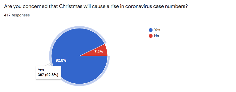 Additionally, more than 92 percent of respondents are worried that the holiday will result in a surge of coronavirus cases.