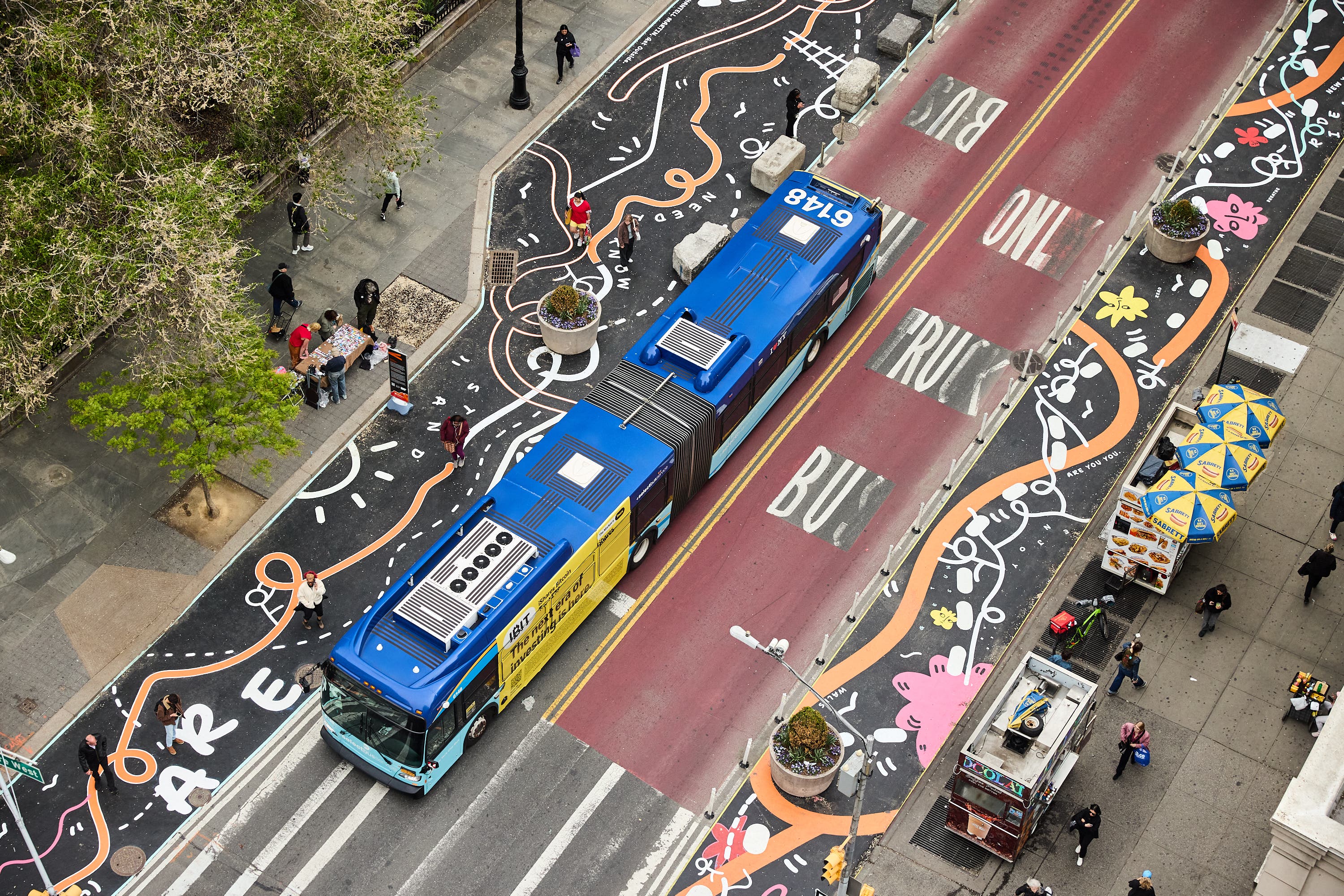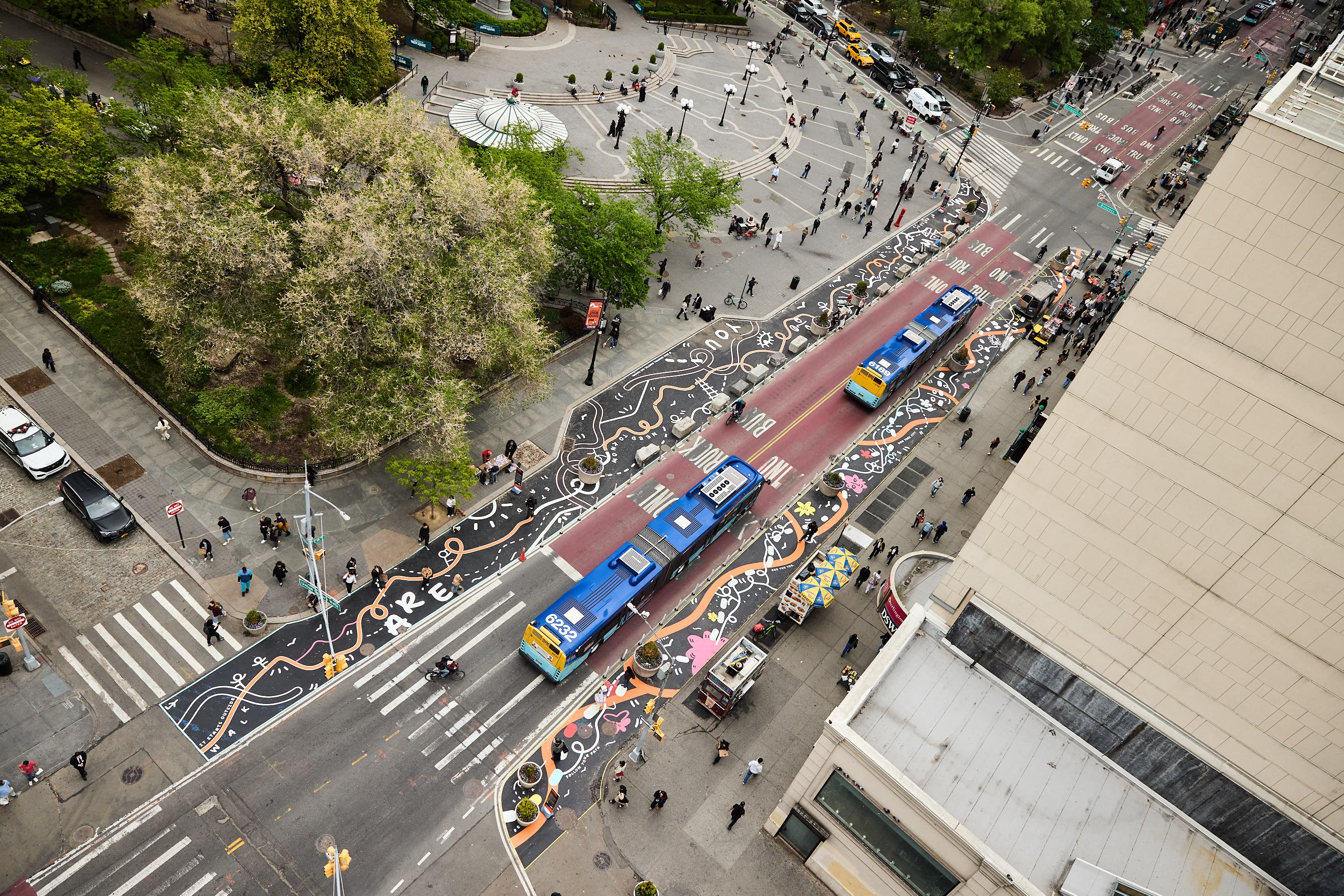 The piece is part of Union Square Partnership's 14th Street Busway Mural program and presented in partnership with NYC DOT Art.