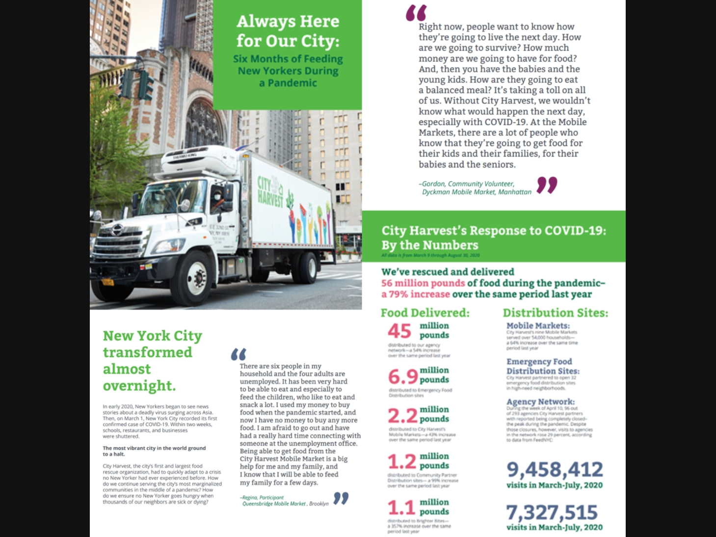 - Testimonials from City Harvest frontline workers and New Yorkers in need
