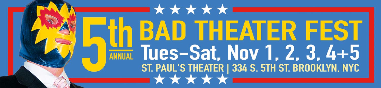What: With the provocative subheading "not bad meaning bad but bad meaning great," the fifth annual Bad Theater Fest continues through this weekend on the south side of Billyburg. Founded with the guiding principle that theater often fails when writers try too hard to be "good," the Fest instead provides an outlet where budding auteurs feel unencumbered by critical norms. This weekend's offerings, four separate programs of short plays with titles like "The Stephen King and I" and "On April 2o, 2016, Kelly Will Not Be Joining Us," seem to suggest the participants have taken this principle very much to heart. For tickets and a complete schedule of shows, go here.