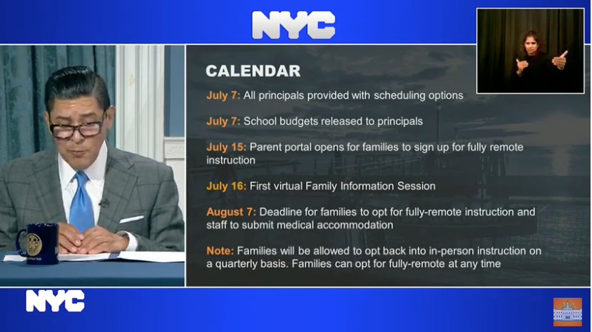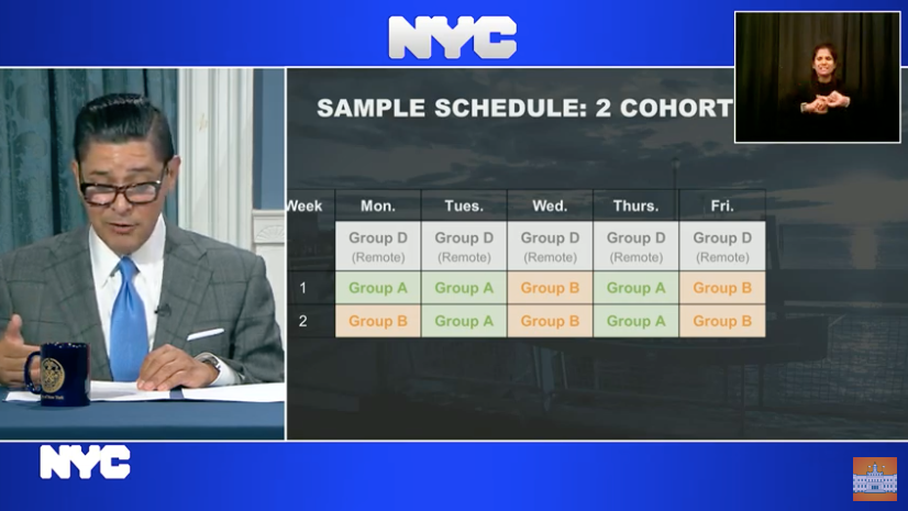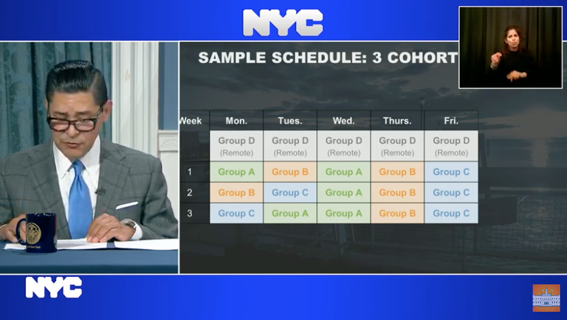 The schedules are the latest details the mayor and Department of Education have given about their plan to bring kids back to school since announcing last week that public schools would reopen in September.