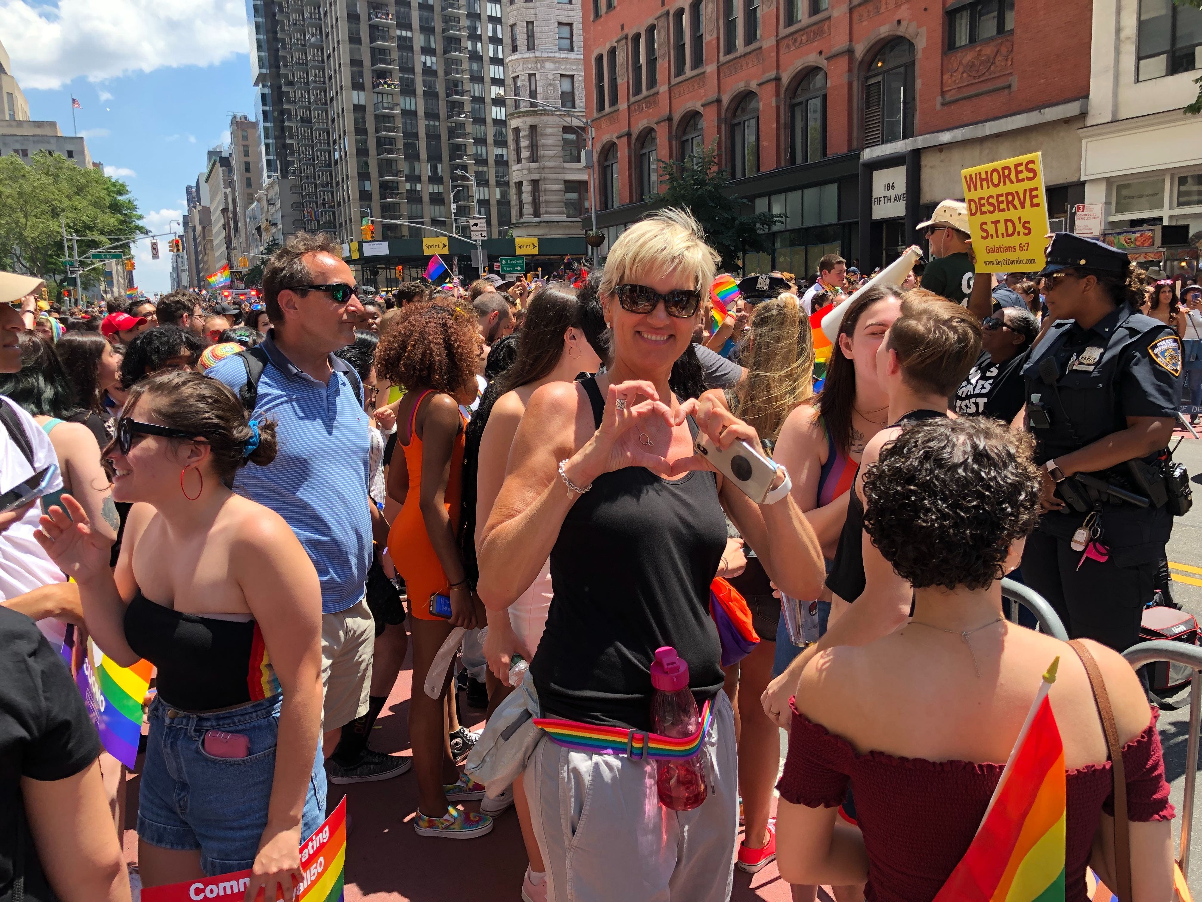 "I think this is the beauty of democracy," said Pride marcher Diane Young. "See all these beautiful people yell back and protest against this.
