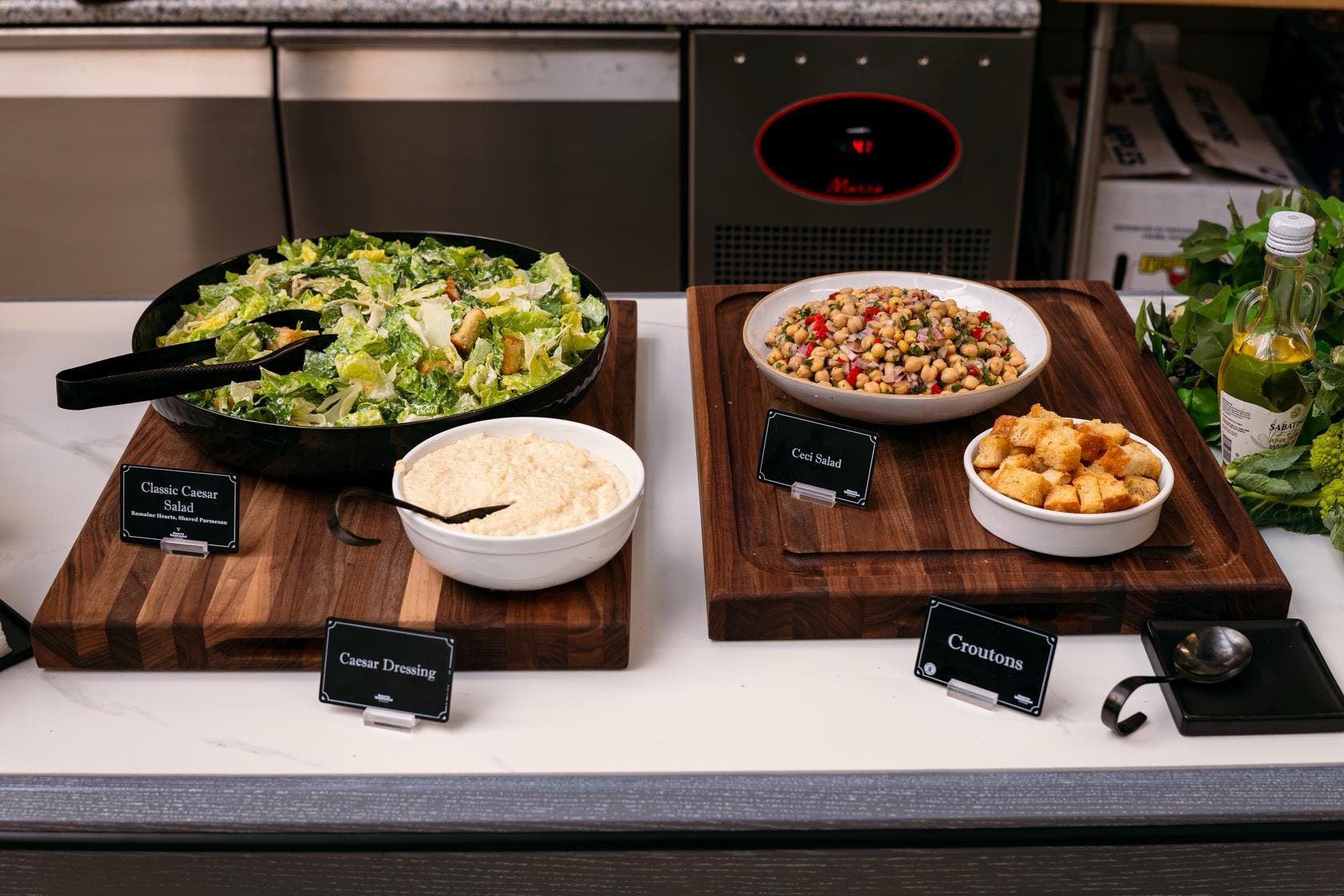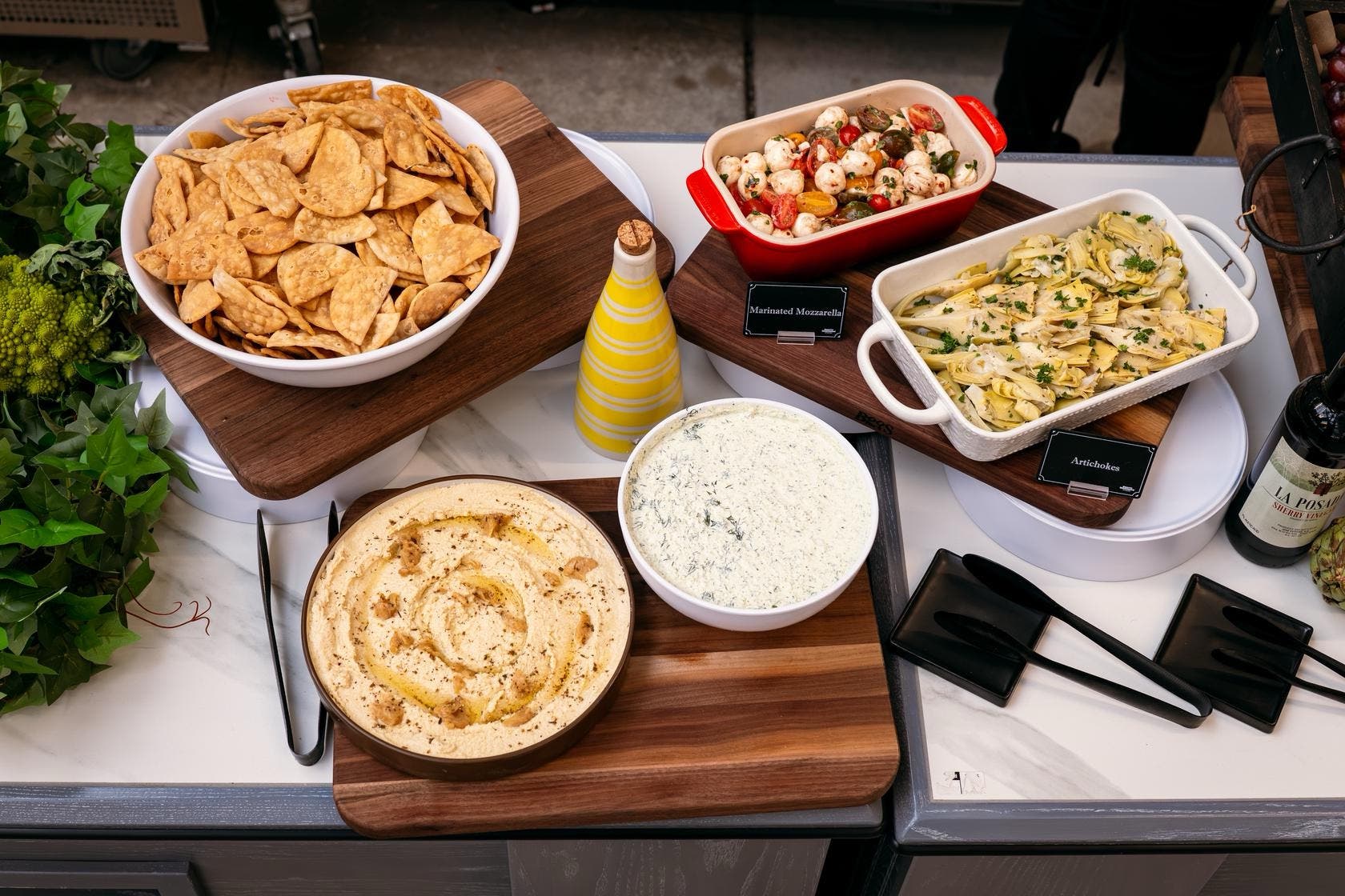 - Wagyu Beef “Tataki” – served with kettle-style potato chips, roasted garlic Parmesan, French onion, and dill pickle dip.