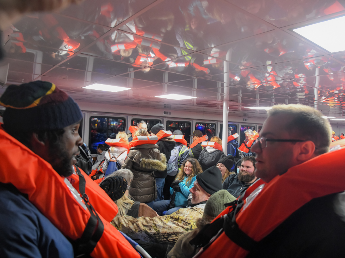 Inside, the mood appears to have been calm, and photos show at least one or two New Yorkers had small smiles for the wintery waterway adventure.