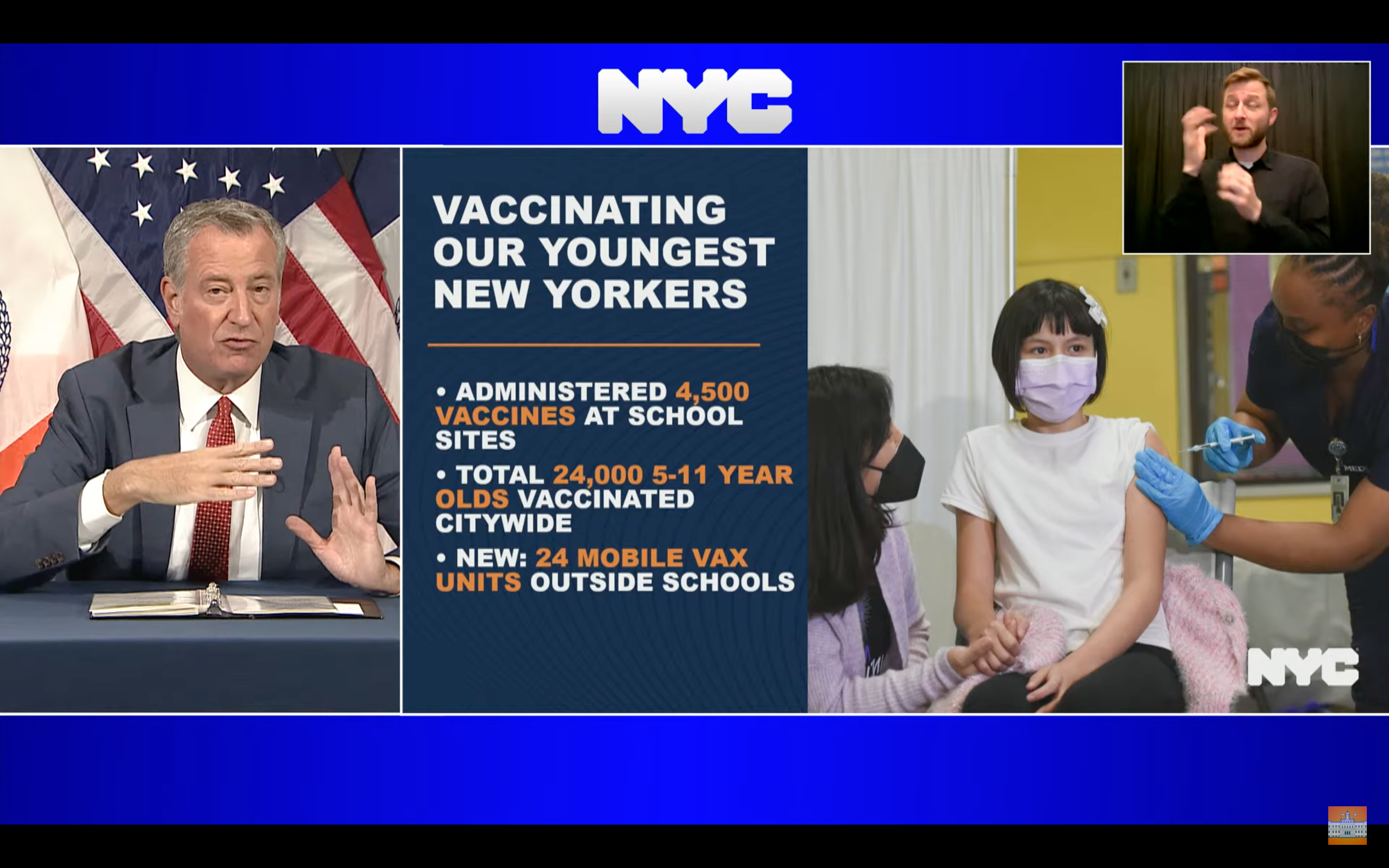 Overall, about 24,000 newly eligible kids got their first dose in the days after approval, de Blasio said.