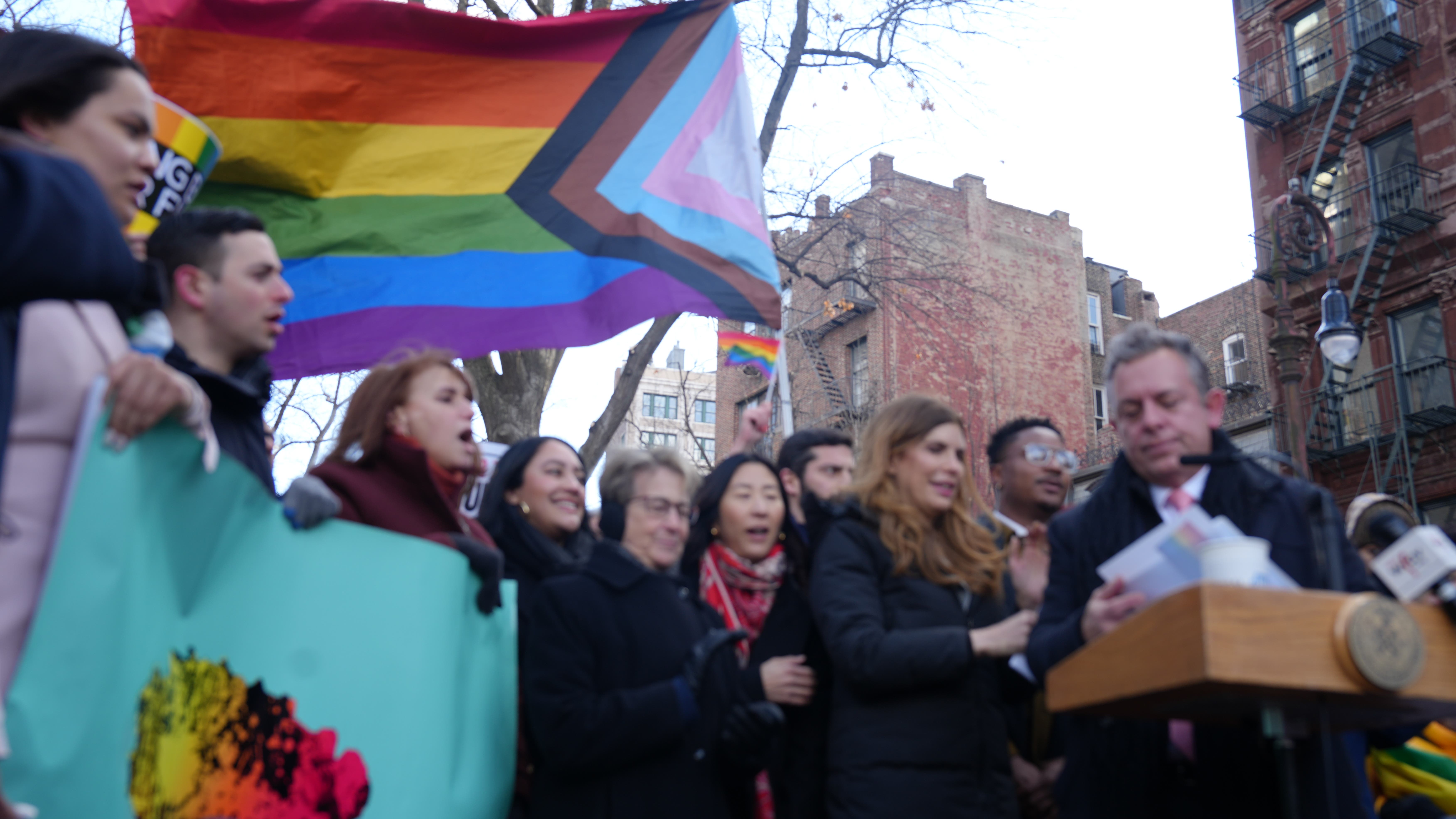 That evening, local leaders and advocates gathered at the Stonewall National Monument to raise the rainbow Pride flag, which federal officials had removed earlier in the week under Trump administration guidance limiting flags at National Park Service sites to U.S. flags or those authorized by Congress.