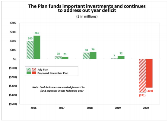 The MTA said the fare hike was needed because the agency is looking at a huge operating deficit come 2020. In July the MTA predicted the 2020 deficit could be $371 million, but if the November Plan is adopted the deficit could be reduced to $319 million, according to materials from the MTA's board meeting.
