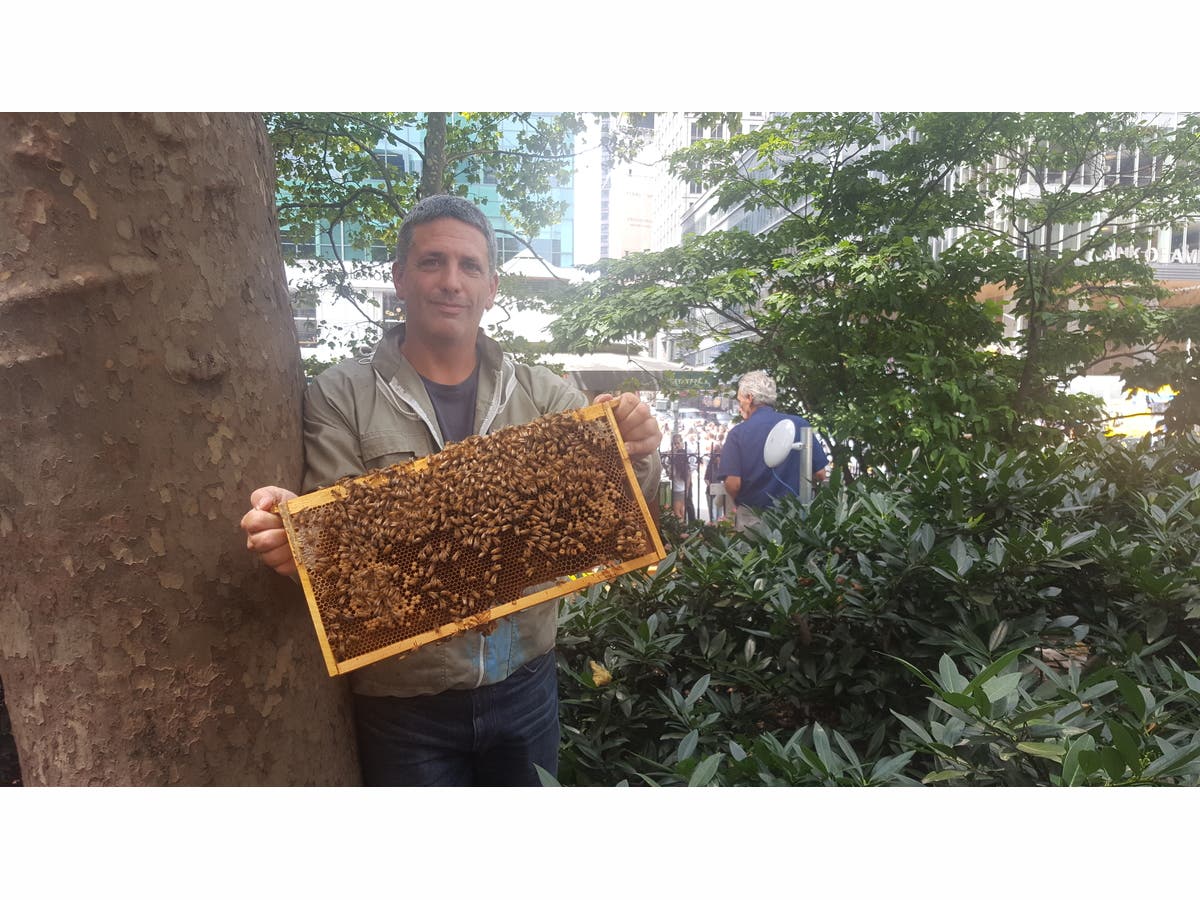 "We combined that strong swarm with one of the hives which was a little bit weaker than the other — it wasn’t weak but it had some room to grow — and we installed them, so those bees had a happy home here in Bryant Park and I don’t think they could be happier," Coté told Patch.