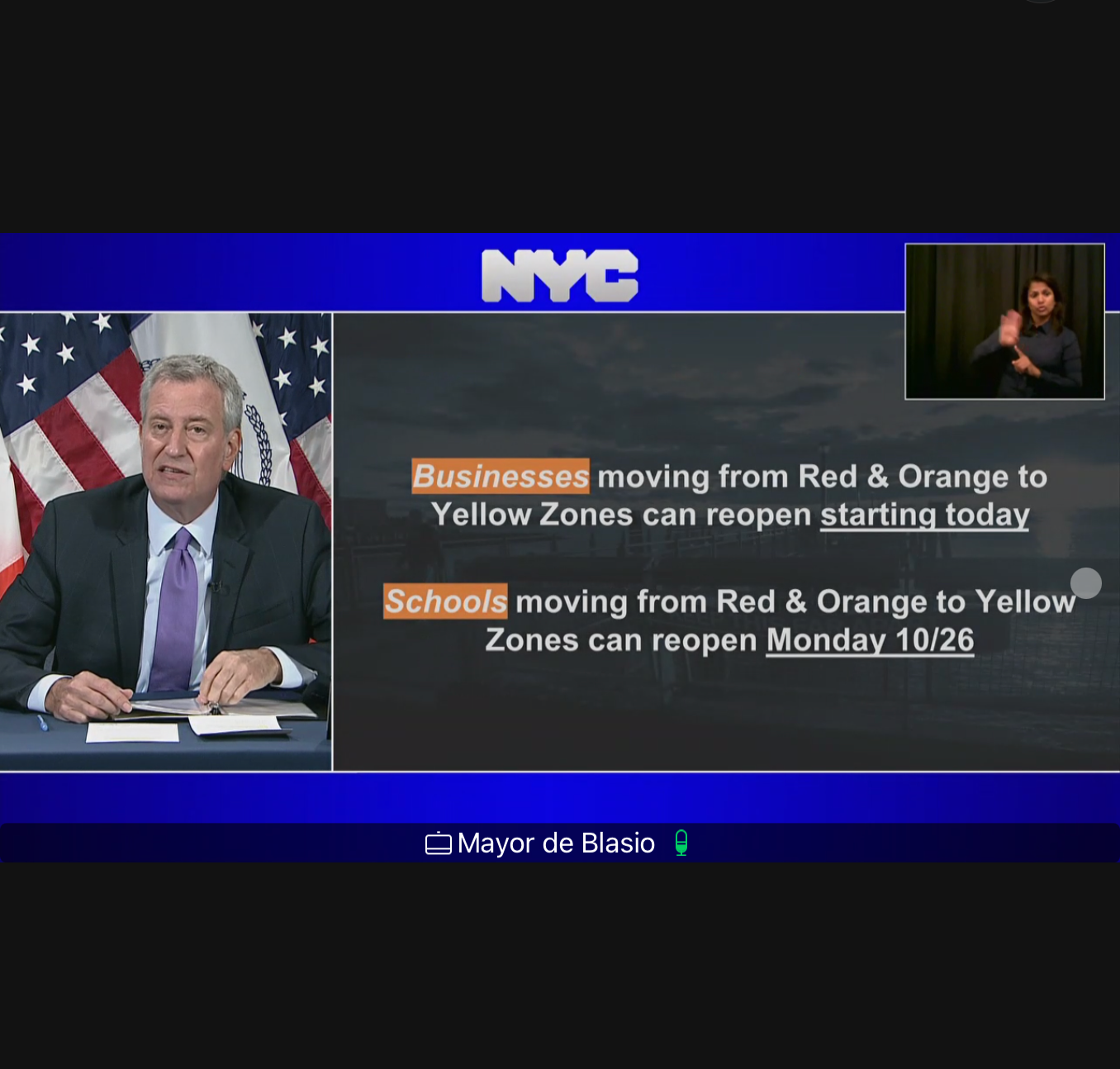 Mayor Bill de Blasio cleared up some confusion the day after Gov. Andrew Cuomo announced that certain clusters' restrictions will lift.