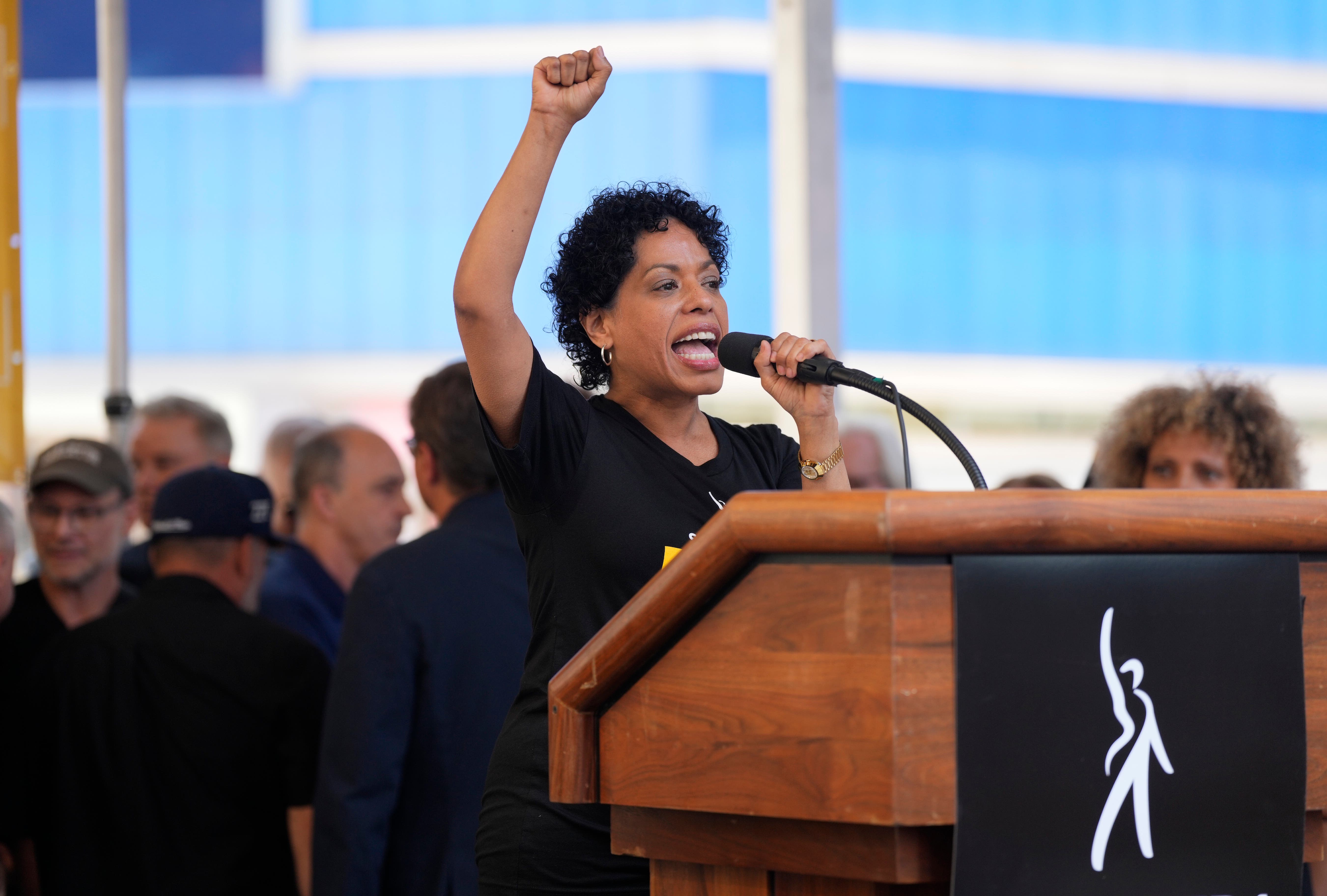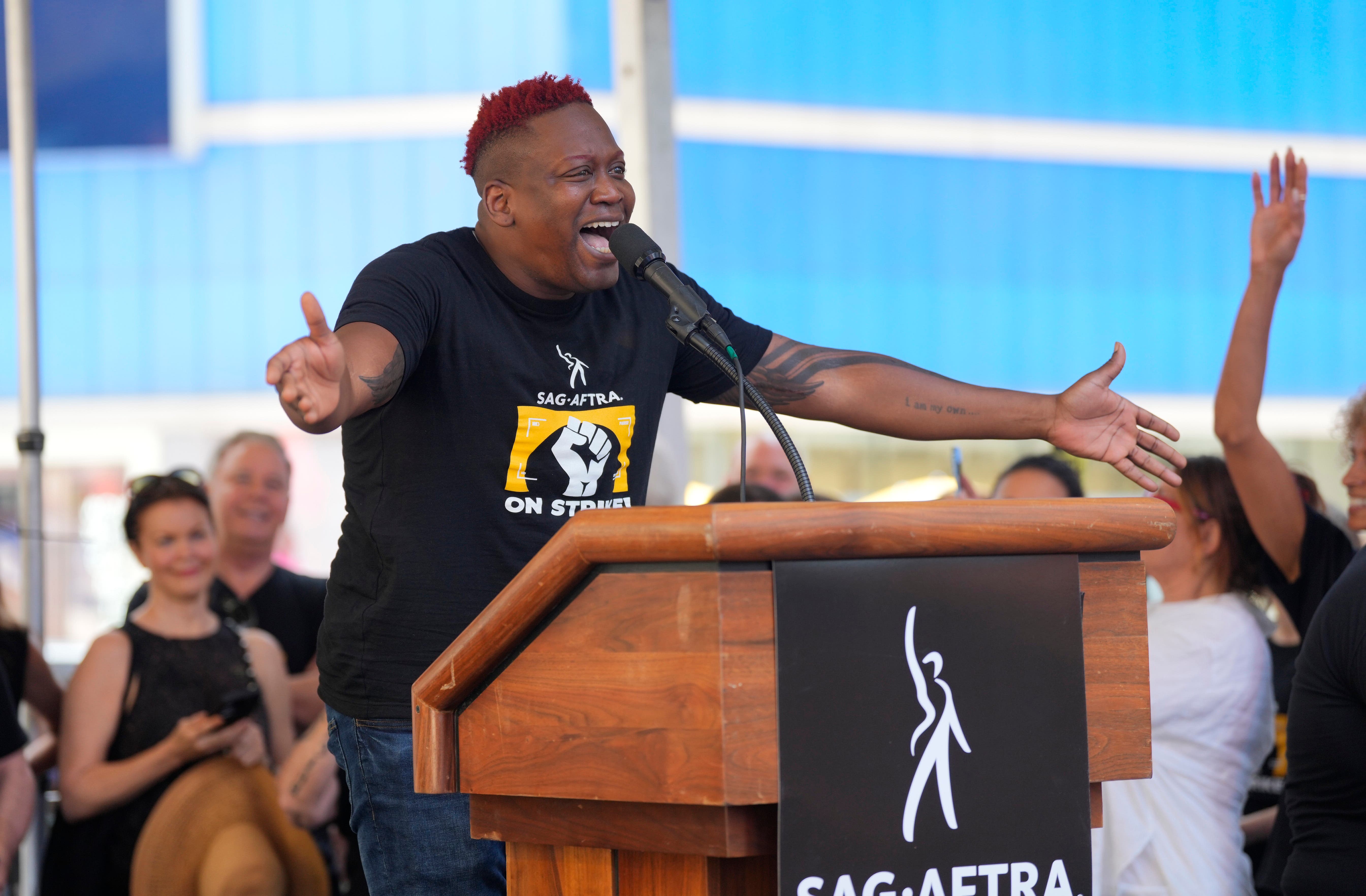 The rally took place a stone's throw from Broadway theaters and, given the talent involved, featured a higher degree of show business than your usual labor rally. "Avatar" actor Stephen Lang quoted Frederick Douglass. Wendell Pierce recited Samuel Beckett. Tituss Burgess didn't speak; he sang Stephen Sondheim.
