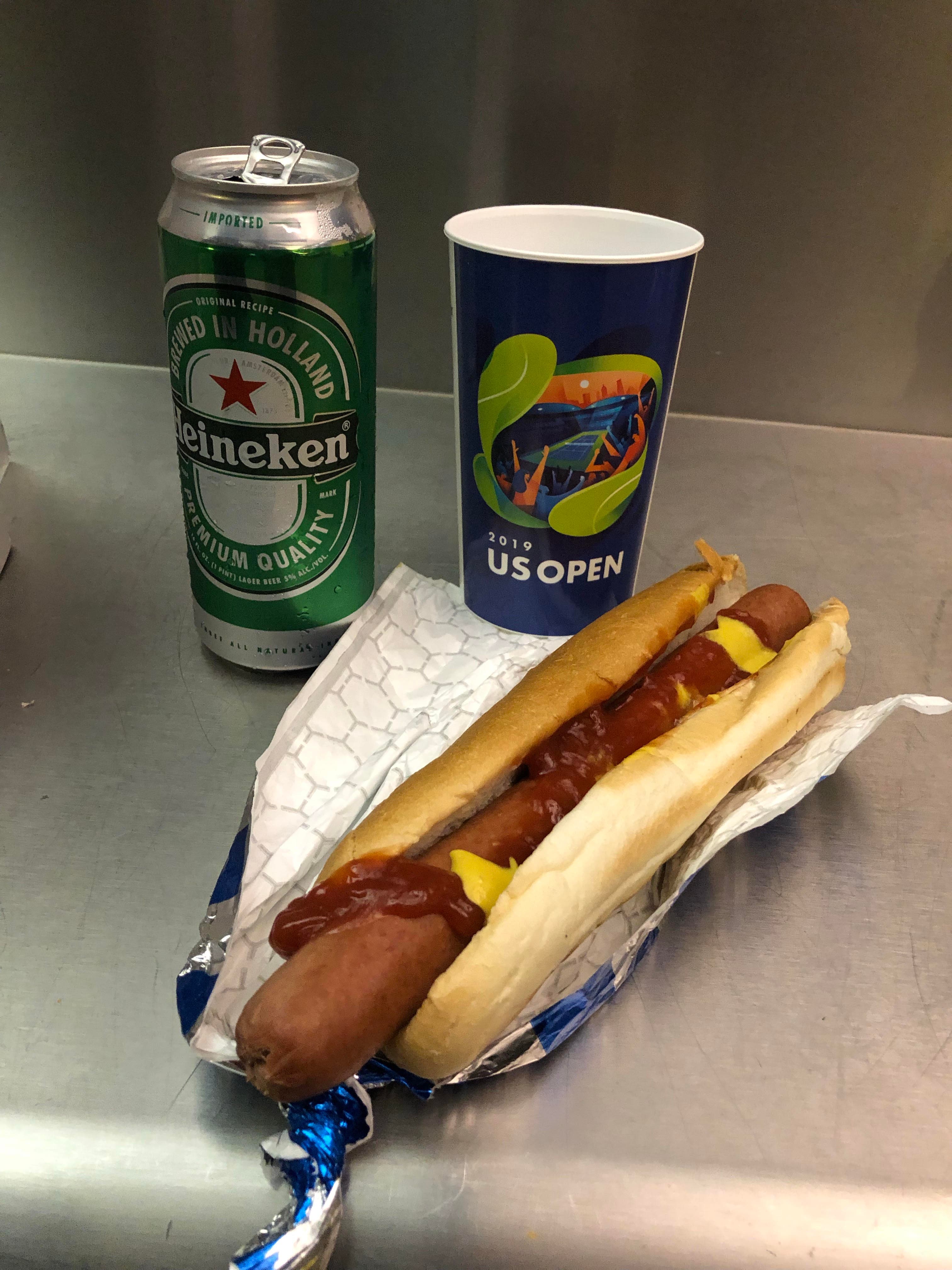 There's no more traditional sports food item than the hot dog, but it will cost you almost $10 to get a foot long version of the American classic at the US Open. Washing it down with a can of Heineken will cost you another $12 and, if you want to complete the meal with a bag of Kettle potato chips, that's another $4.75.