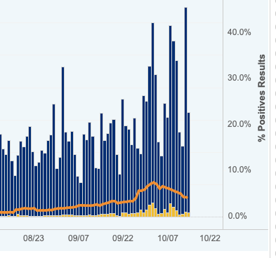 That number is substantially lower than Oct. 1, when the state reported 213 people with positive test results.