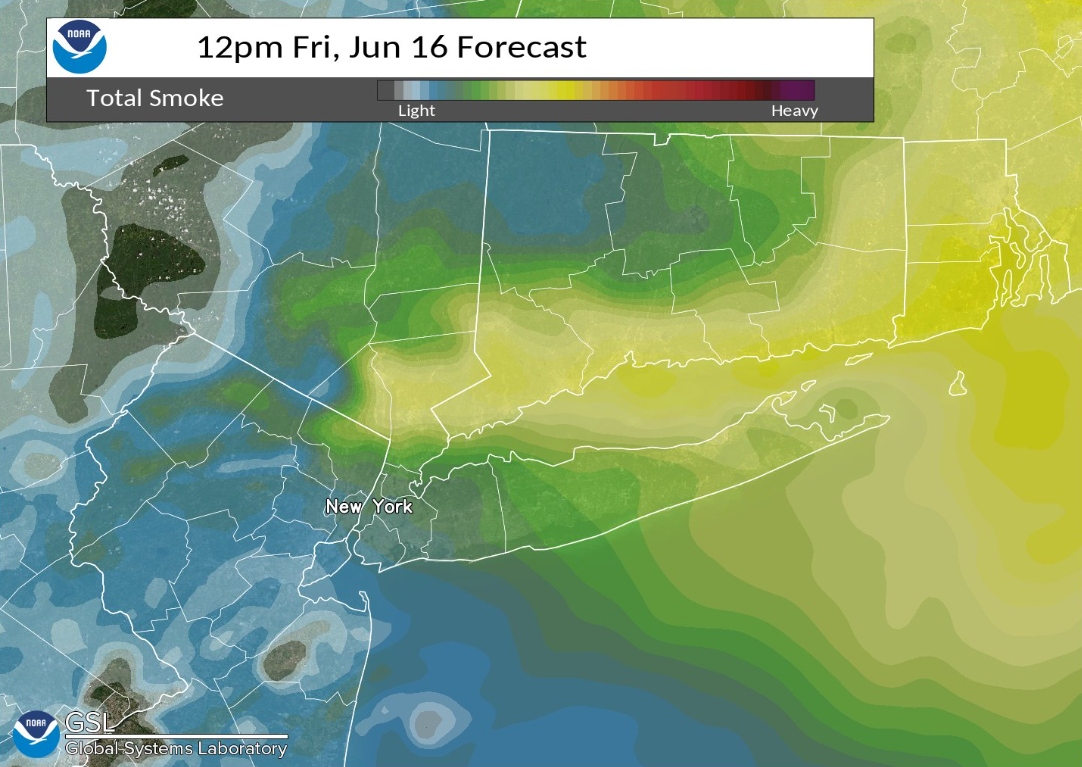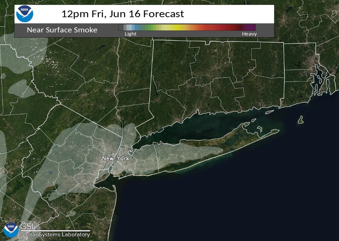 Southern Rockland and Westchester, much of Long Island, NYC and northern New Jersey will experience near-surface smoke, the NWS said.