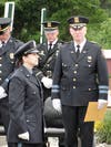 About 120 people, mostly family and friends turned out for the ceremony in front police headquarters on Maple Avenue.