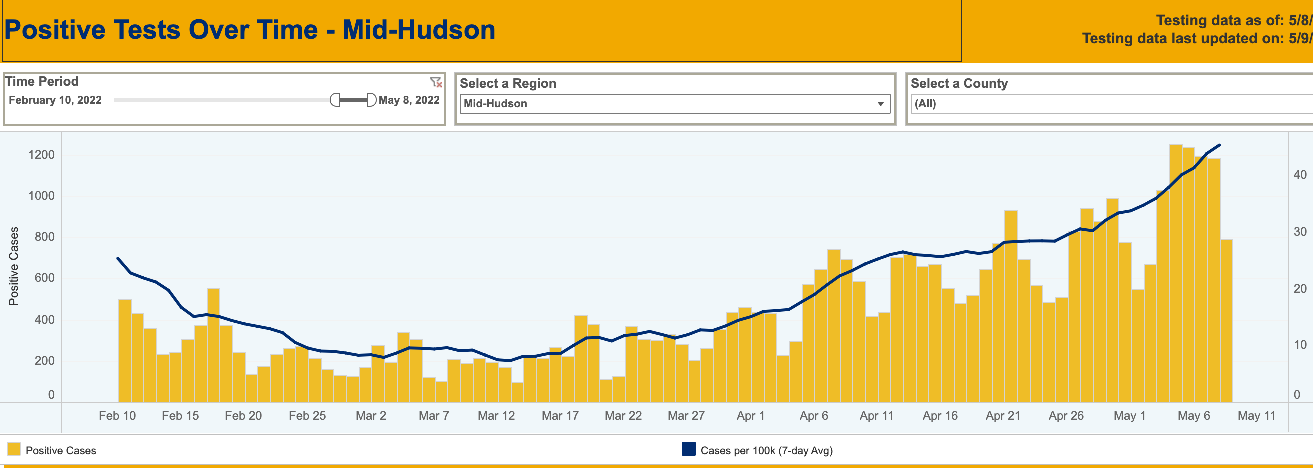 - Dutchess more than doubled to 39.2 cases per 100K up from 16.6 per 100,000 April 13.