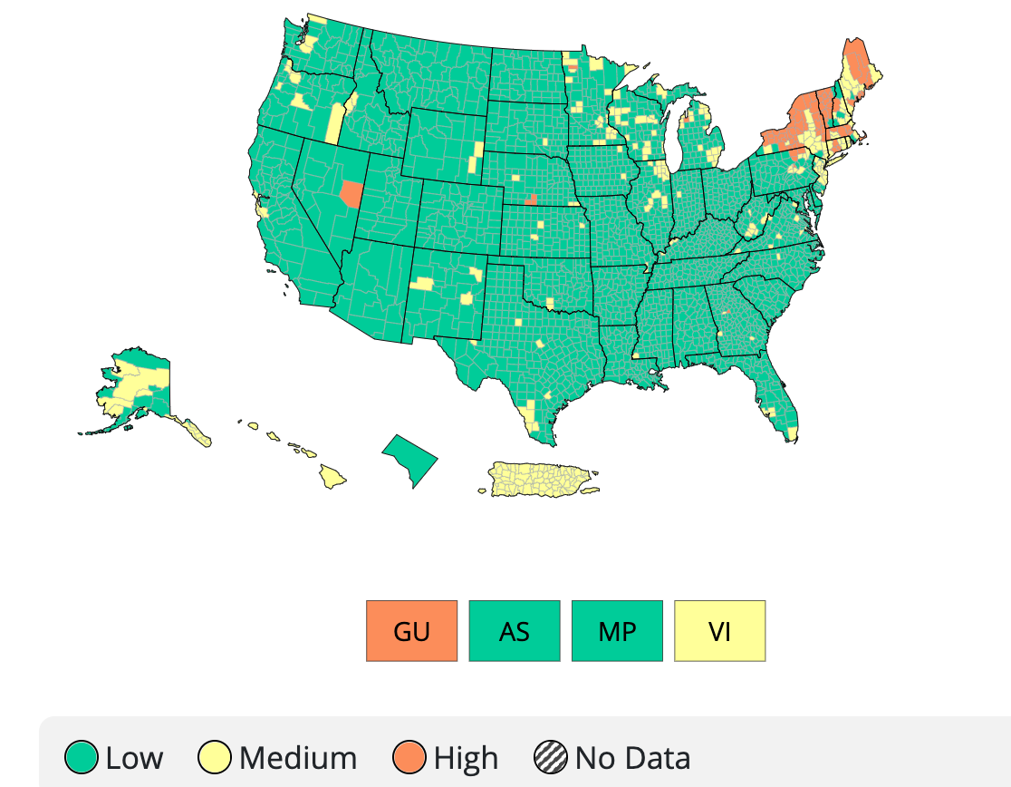 - Putnam doubled its cases: 46.8 cases per 100K, up from 22.1 as of last month