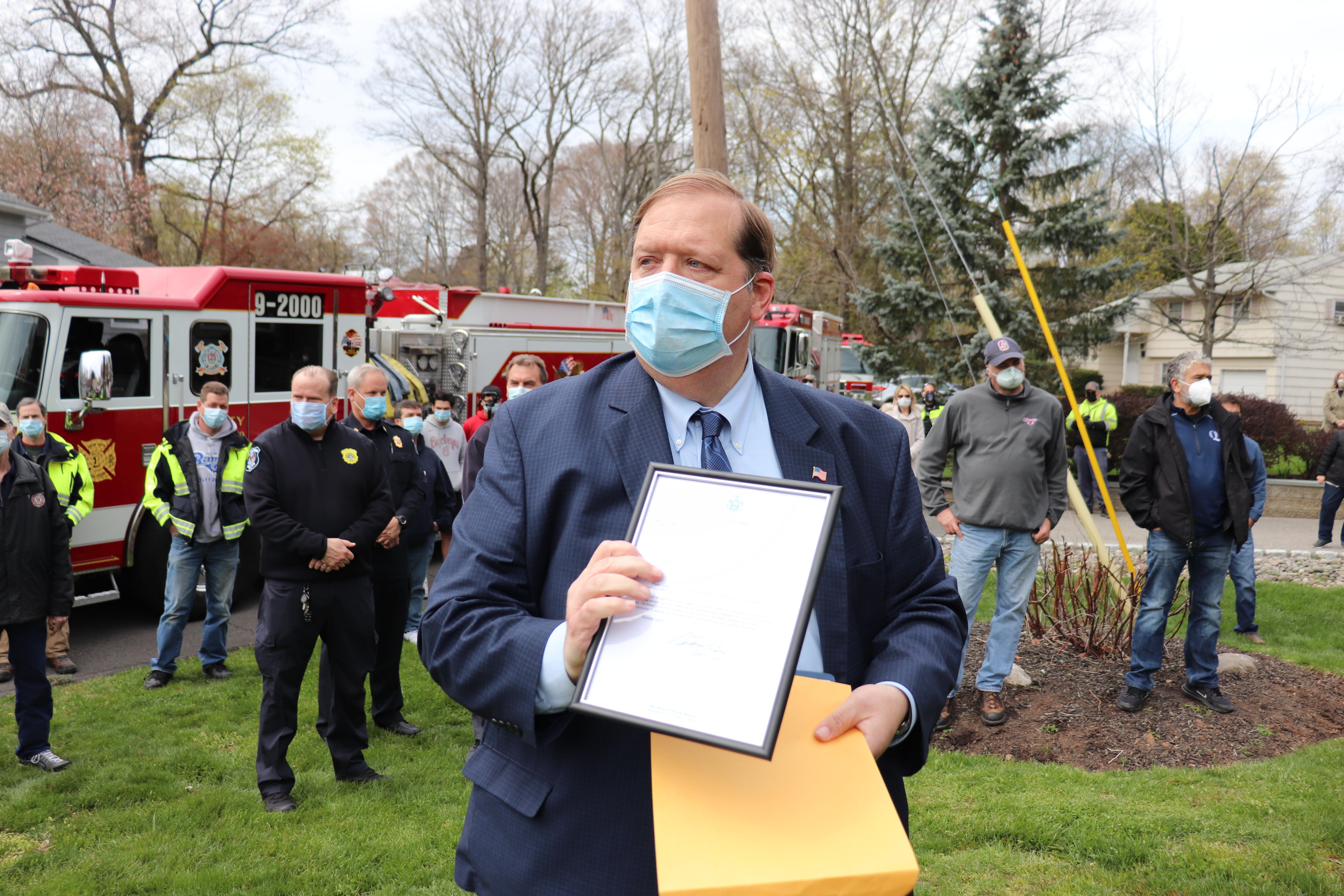 All participants met at Clarkstown Town Hall and headed in procession to Woodside Drive in New City at 1:30 p.m. McCullagh was outside in a lawn chair to watch the parade and receive a proclamation.