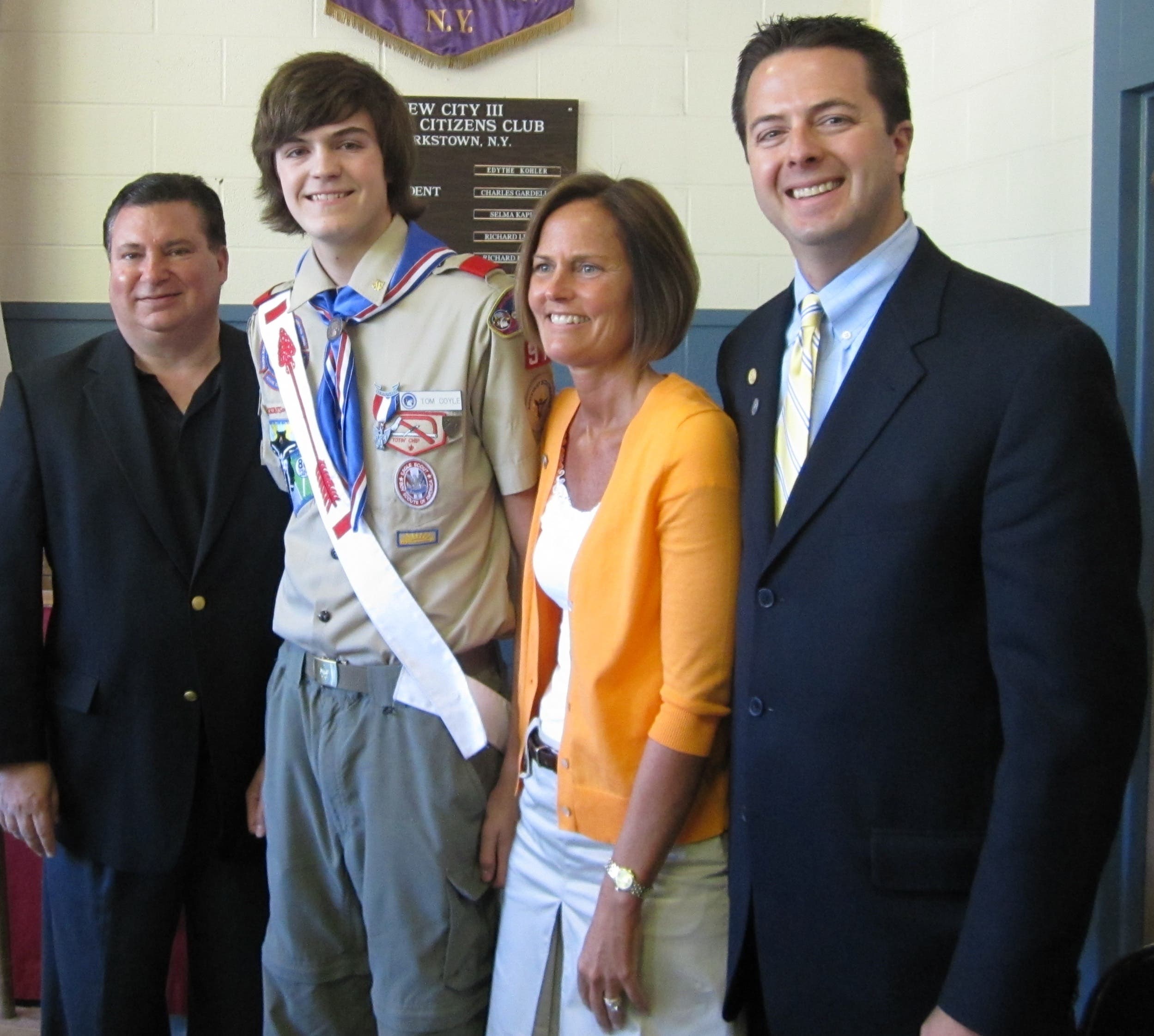 A ceremony on Saturday, April 24, at Street Community Center in New City honored Coyle, along with his parents, Gordeon and Karen, for his reaching the Eagle Scout rank - the highest achievement for a Boy Scout.