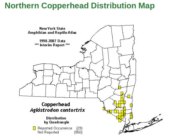 Hornicek carefully went in for a closer look. Careful was good. He identified the snake as a Northern Copperhead, one of New York’s three native venomous snakes species.