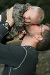 What you need: an unfinished frame; paint and paintbrushes or other decorations; a picture of Dad and child