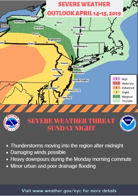 The National Weather Service has issued a hazardous weather outlook for Rockland and Orange counties.