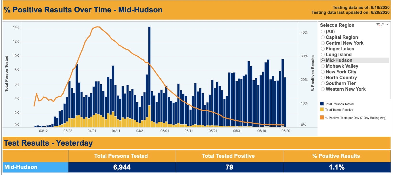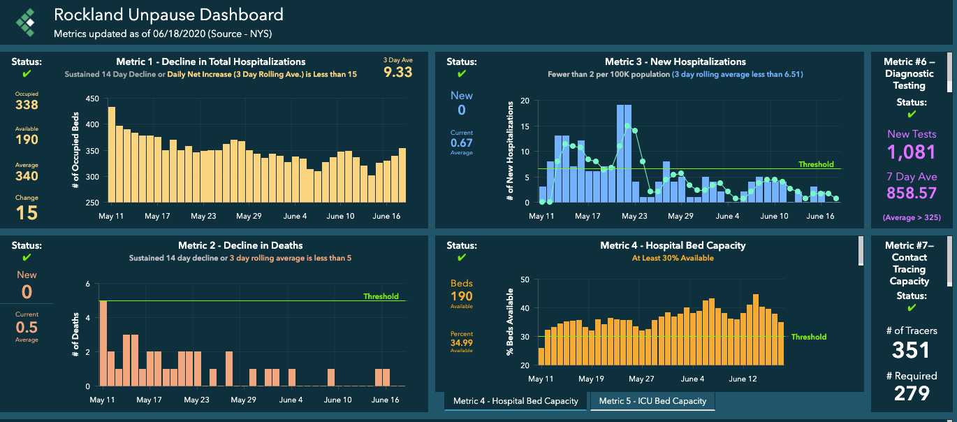 "Our numbers are very favorable as we move closer to entering Phase 3," said Rockland County spokesman John Lyon. "We urge residents to visit the Dashboards we have created that display all of this data publicly. Look at the numbers and trends yourself and see how far we have come over the last 3 months."