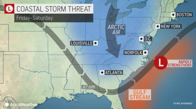 It's certainly going to be a big storm, with the potential to be classified as a bomb cyclone, said Alex Sosnowski, AccuWeather senior meteorologist. "Bombogenesis occurs when the central pressure of a storm crashes by 0.71 of an inch (24 millibars) or greater within 24 hours. When the pressure plummets, winds rush in toward the center of the storm at a faster pace. The winds can carry a great deal of moisture with them and unleash that in the form of copious amounts of precipitation. If the air is cold enough, heavy snow and blizzard conditions can ensue."